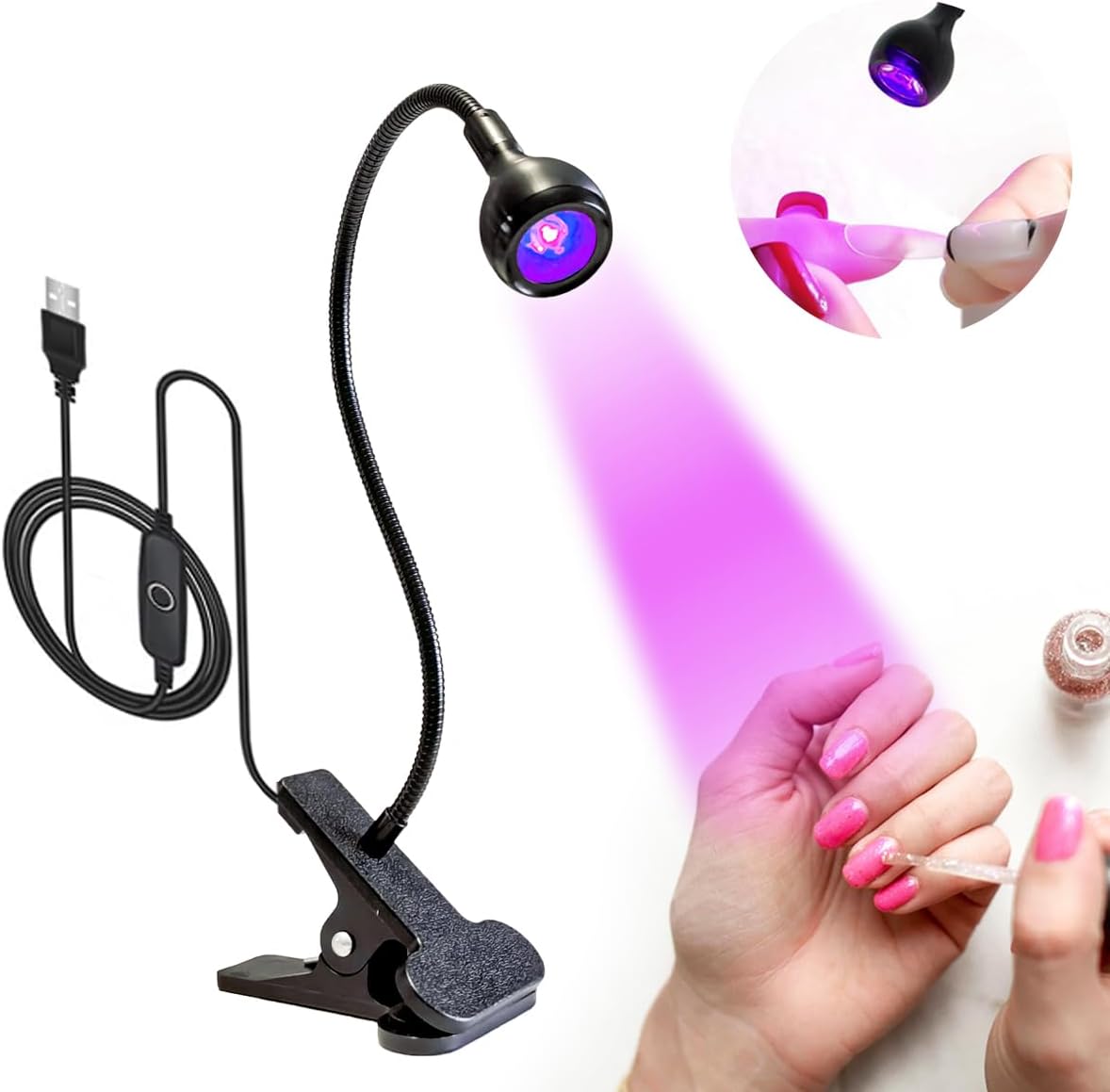Gooseneck USB Ultraviolet Curing Lamp has bendable neck,can be easily adjusted to any angle for convenient use.