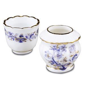 - porcelain flower vases or flower pots in Blue Onion Pattern