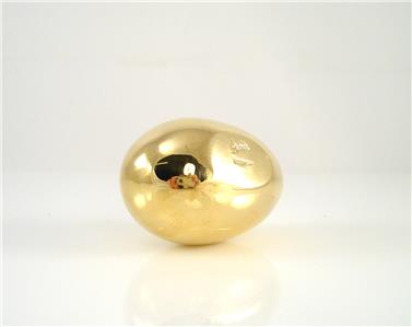 We are offering this beautiful and original Auböck Paperweight in the design of an egg. The design dates back to the 1950s, the object is still handmade in Austria and marked with 'Auböck' and 'Made in Austria'. This egg is available in two different sizes, this is the large version. The material is polished brass. The object is massive and 52mm (2 inches) long. As the Aubock designs are all still handmade in limited quantities and in many cases natural material like wood or bamboo is used, small variation between different objects is normal.