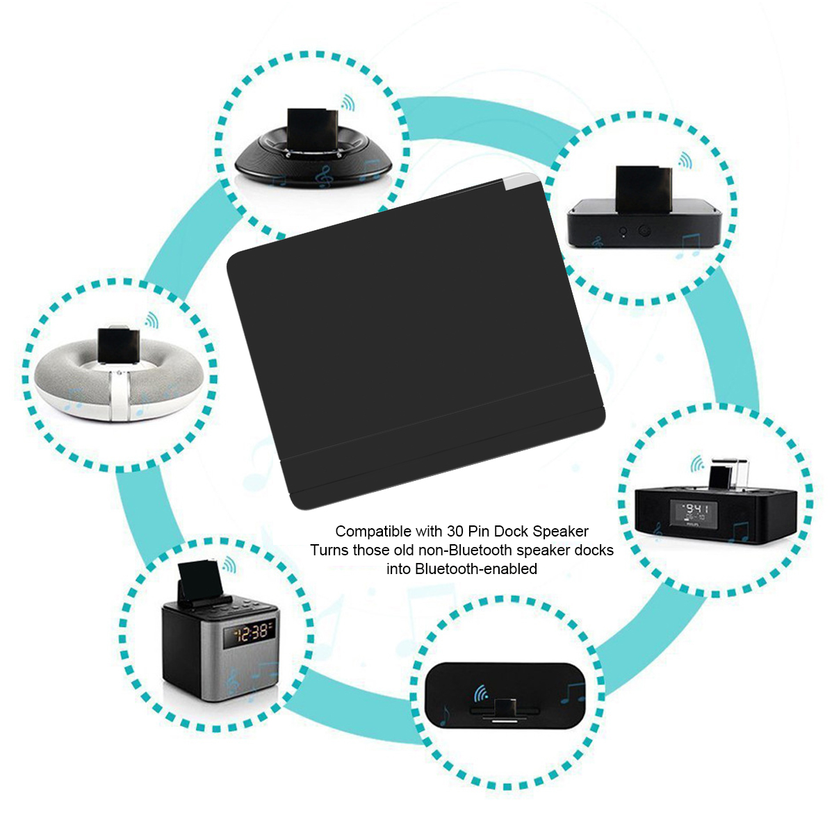 3 Directly connects to a 30-pin dock for iPad, iPod, iPod Touch and iPhone, turning the speaker into a stylish wireless Bluetooth-compatible speaker that's easy to use.