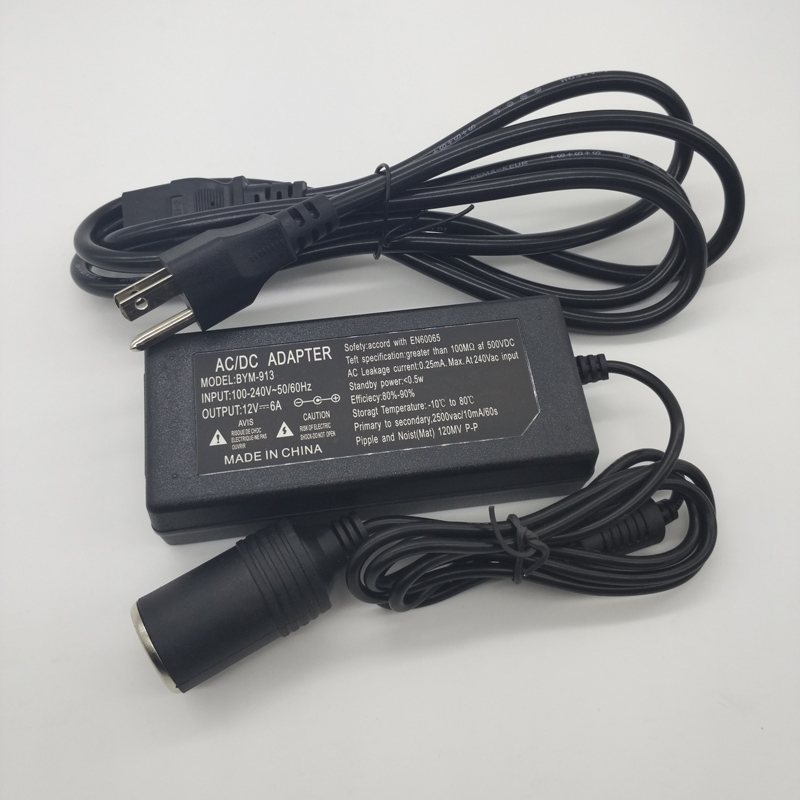 AC Power 100V-240V To DC 12V 6A 72W Car Auto Inverter Cigarette Adapter US Plug