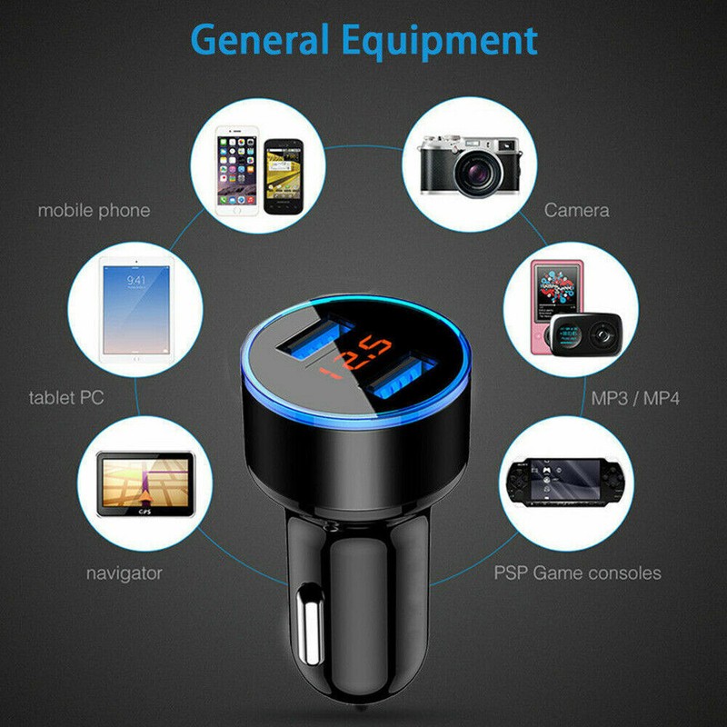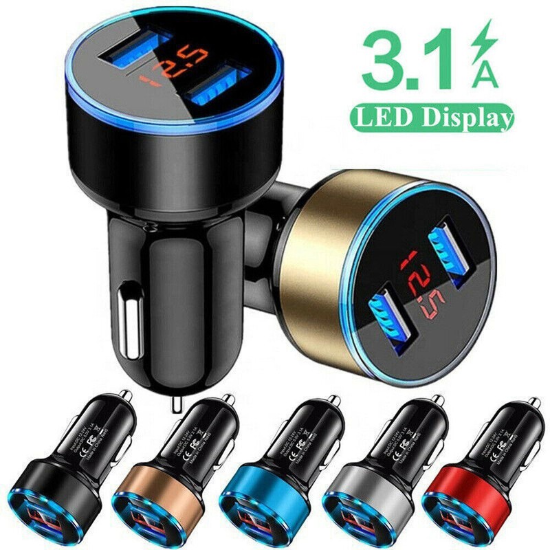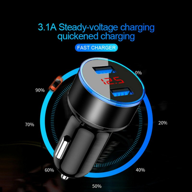 3.1A Dual-Ports USB LED Display Digital Voltmeter Car Charger Cigarette Lighter