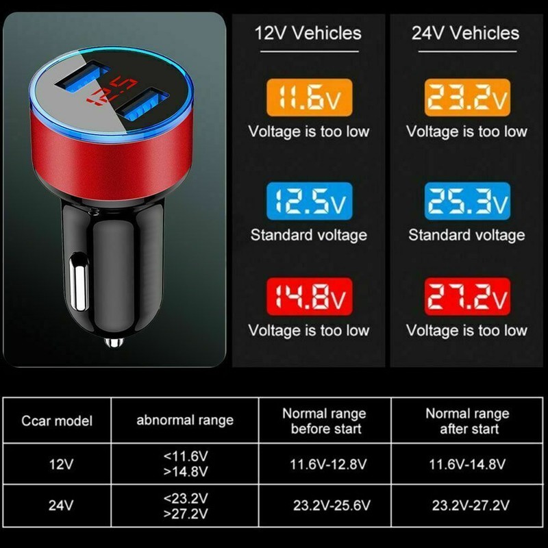 Features: 100% brand new and high quality LED indicator light; blue led light display screen,red light shows the number Dual USB ports, charge twe devices simultaneously Monitor car battery voltage real-timely(When no device connected for charging); Display charging current when phone is charging 3.1A super-high current output, with intelligent distribution based on different devices, it adjusts the output on the basis of the saturability of battery momentarily, and charges your device at high speed while under strong protection. Fast charging only takes about 1.5hrs for Apple device Incredible quality, aluminum alloy rim, pure copper USB contact point, more durable Smart surge protection via fuse mode, dual smart chips with high speed charging Built in overcurrent, overvoltage protection, support trickle charge and safeguard the charging status Smart temperature reduction system dissipates the heat of internal components of car charger, and keep it in a suitable temperature status for normal work and extending life-span. Wide Compatibility, suitable for most phones/tablet pc/navigator/PDA/PSP/MP3/MP4/GPS, and other digital devices Specification: Material: Aluminum Alloy+ABS Input Voltage: DC12V-24V Output Voltage: 5V Output Power: 120W Output Current: 3100mA Work Temperature: 0~40℃ Size:Approx. 60*30mm Color: Silver,Gold,Black,Blue,Red Package Included: 1 x Car Phone Charger