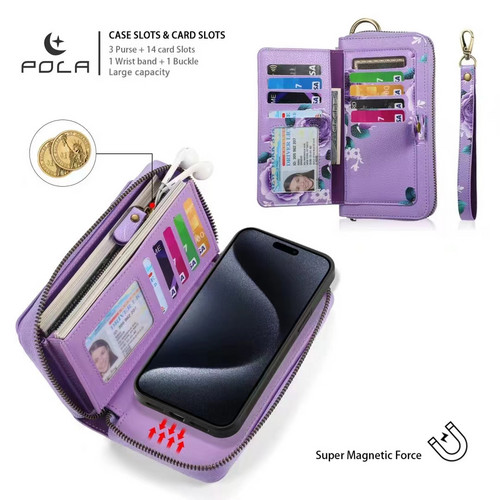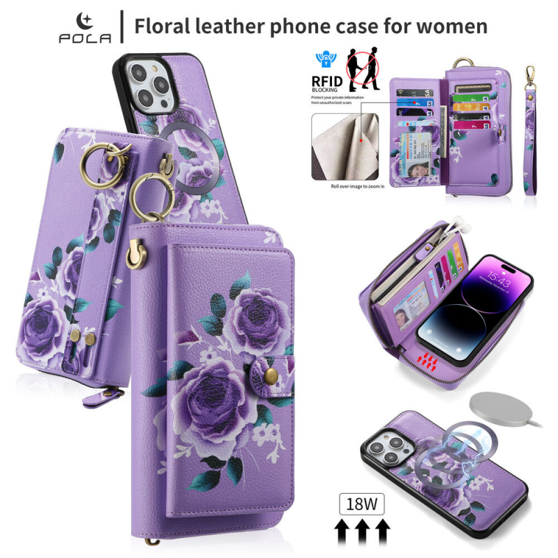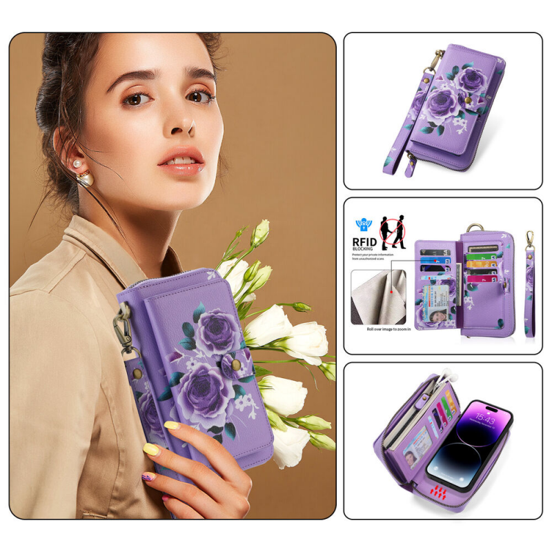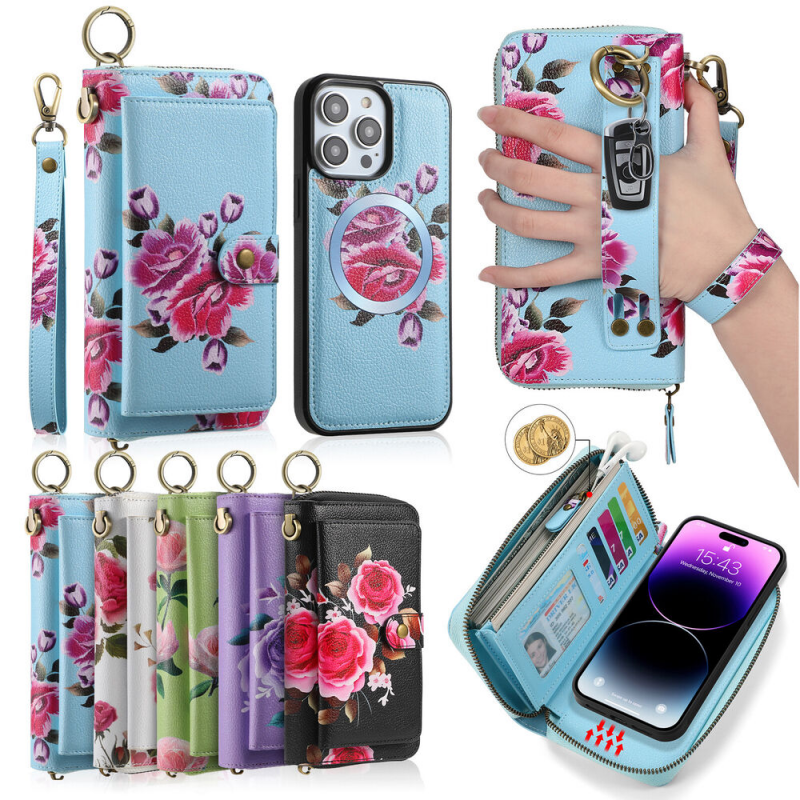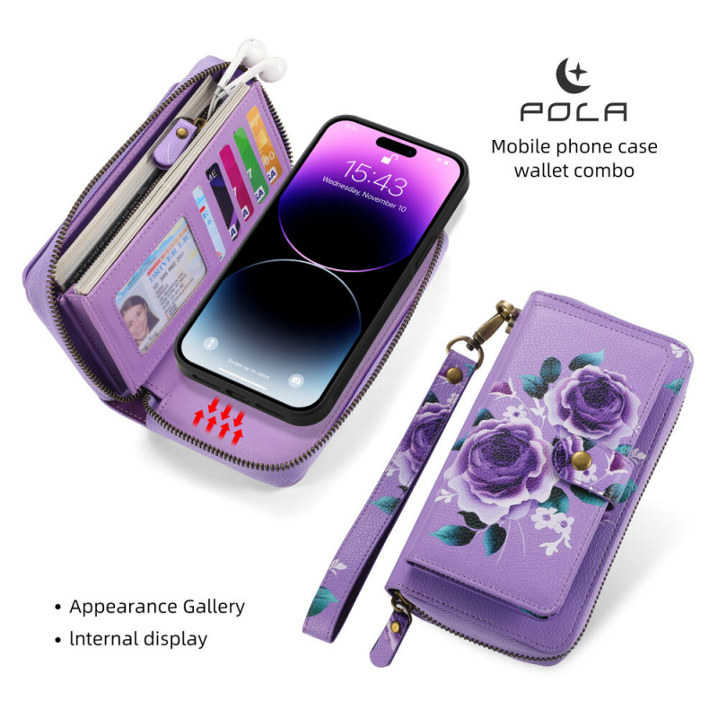 Large Capacity Wallet case features 14 card slots + 1 zipper pocket + 3 cash slot. You may easily take cards, cash, coins and other small belongings when you go out without holding bulky handbag.