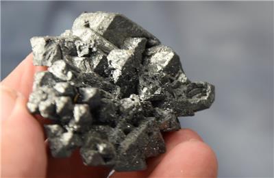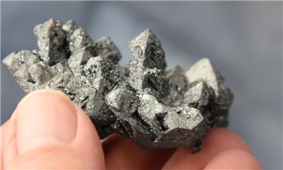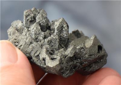 Description: RARE Pseudomorph Hematite after Magnetite. This is an exceptional piece. The terminations are great. Though hard to photograph, this piece absolutely sparkles. Even the form on this one is RARE with all the points on one side. I had this specimen in my collection and purchased a bigger specimen. What has been coming in from this mine in the last three years can not come close the the quality of this specimen.