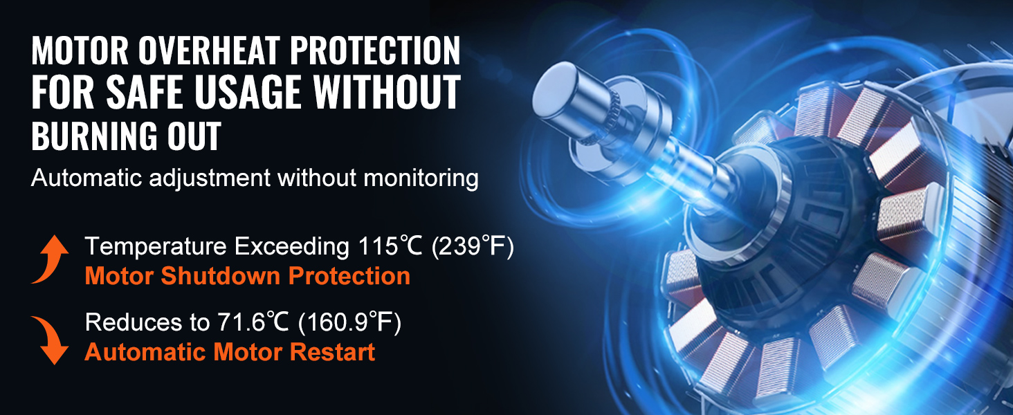 Equipped with advanced overheat protection, the electric PVC conveyor shuts down automatically if the motor temperature exceeds 115℃ (239℉), avoiding damage without constant monitoring. And when it cools down to 71.6℃ (160.9℉), it's back in action!