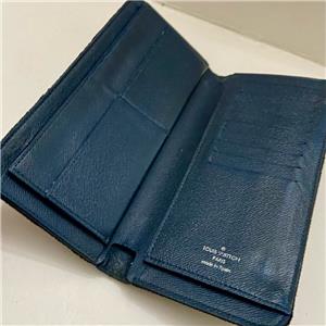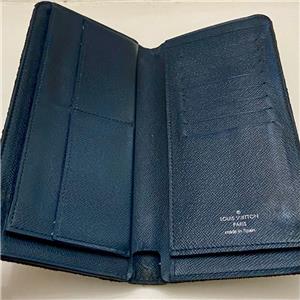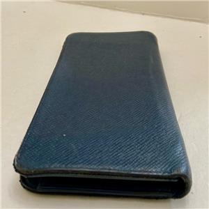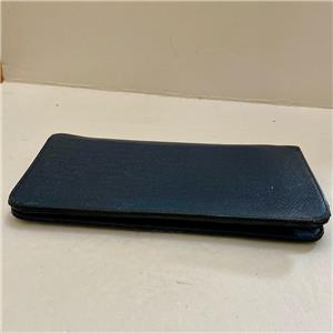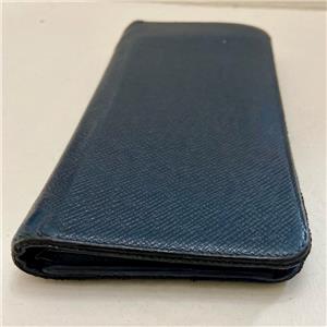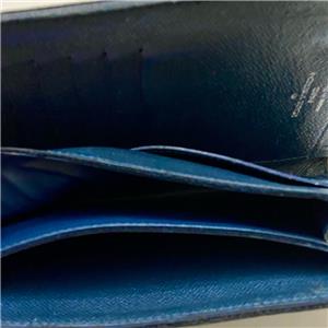 This is a beautiful pre-owned long wallet made of dark blue taiga leather. This wallet has a slots for bills, IDs and Credit cards. Folded it measures about 8 inches long and 4 inches wide. Originally this was a zippy long wallet but the zipper has issues so it was removed to convert it into a bifold long wallet. It is in good condition with minimal wear as shown in photos. Date code: (CA2115) Made in Spain, 21st week of 2015.