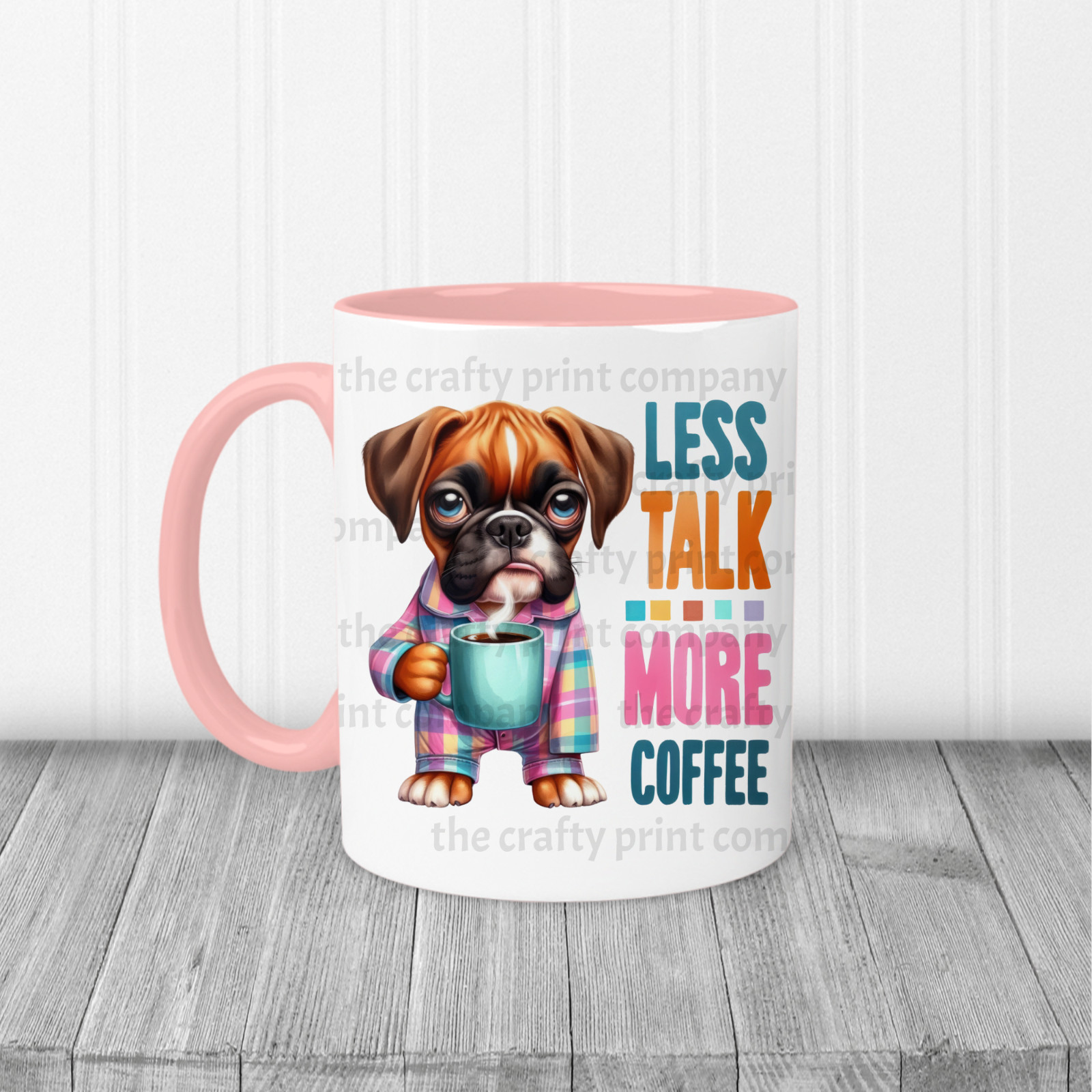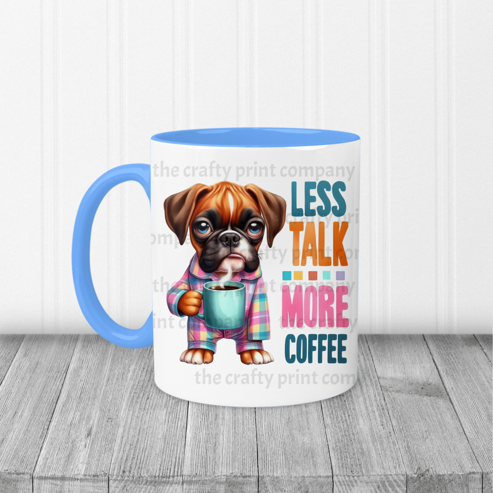 Black, Light blue, Red and Pink or you can choose just a plain white mug. 11oz