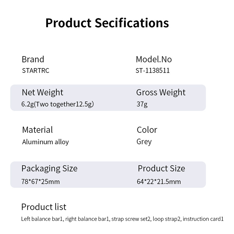 l Left Balance Bar x 1 + Right Balance Bar x 1 + Strap Screw Set x 2 + Strap Loop Cable x 2 + Indicator Card x 1