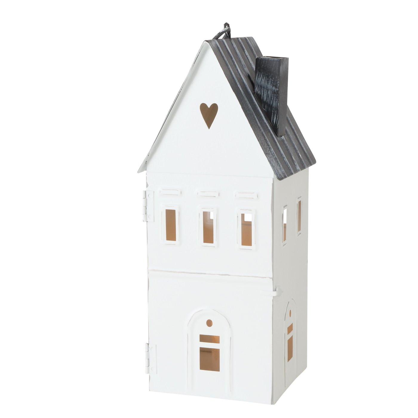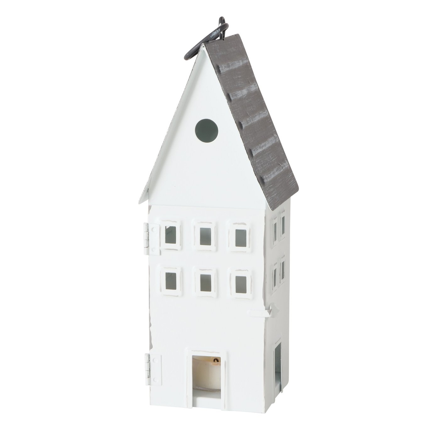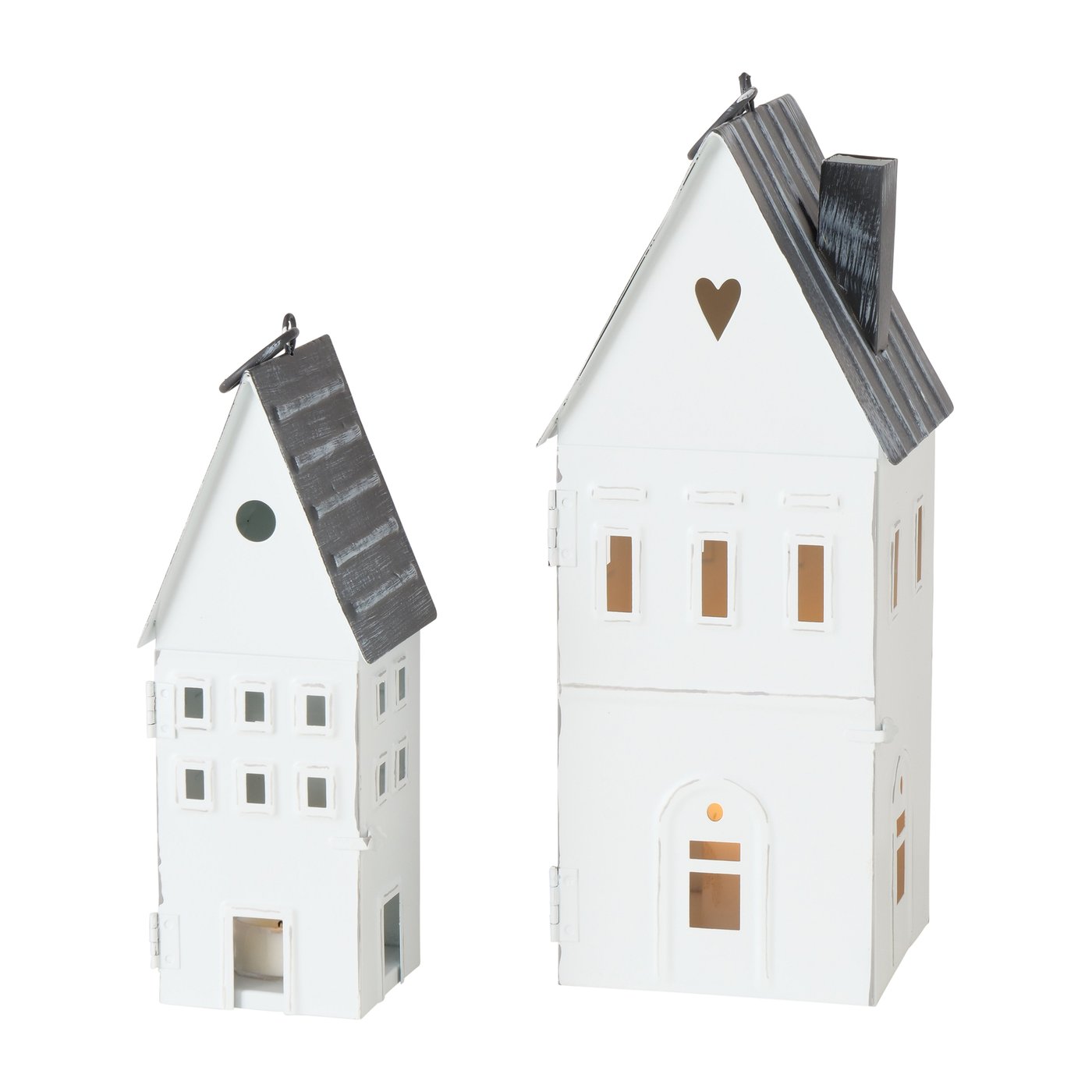 - Windlicht Häuschen Set Weiß Grau Shabby Metall lackiert Lichthaus