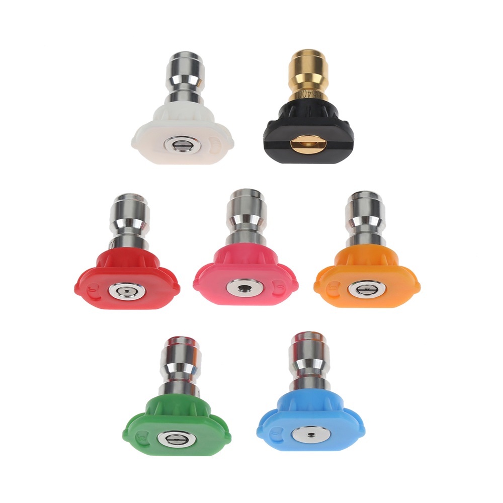 6. 7 Spray patterns: comes with 7 pieces spray nozzle tips in different spray patterns, the red one is 0 degree, yellow one is 15 degree, green one is 25 degree, white one is 40 degree, black one is 65 degree, pink one is soap mode, and blue one is rinse mode