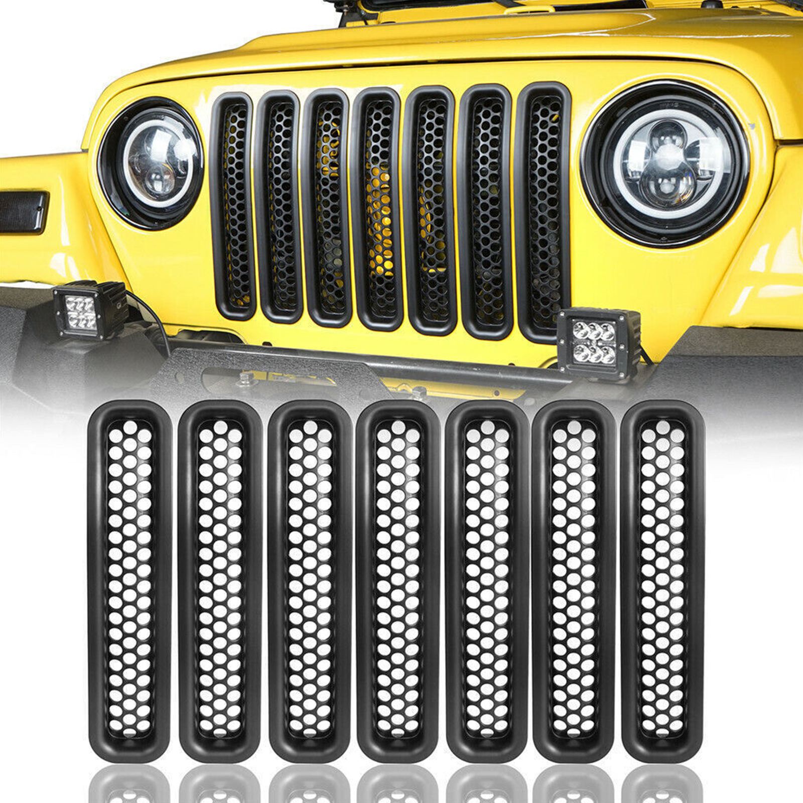 7Pcs/Set ABS Plastic Car Front Grille Cover Trim for Jeep Wrangler TJ 1997-2006