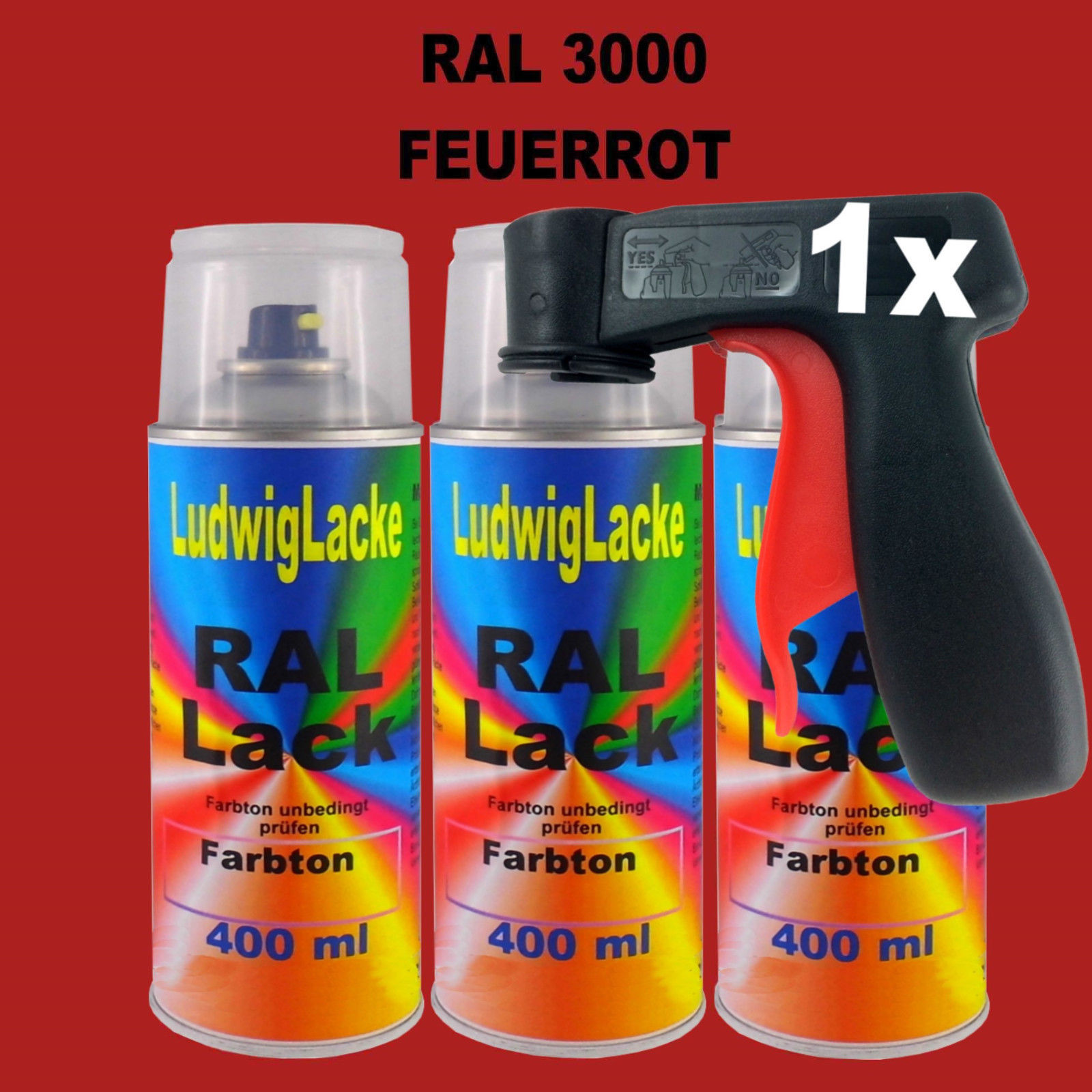 Sofort Kauf Feuerrot RAL 3000 glänzend 400ml 3 Spray Farbenspray Autolack & Griff