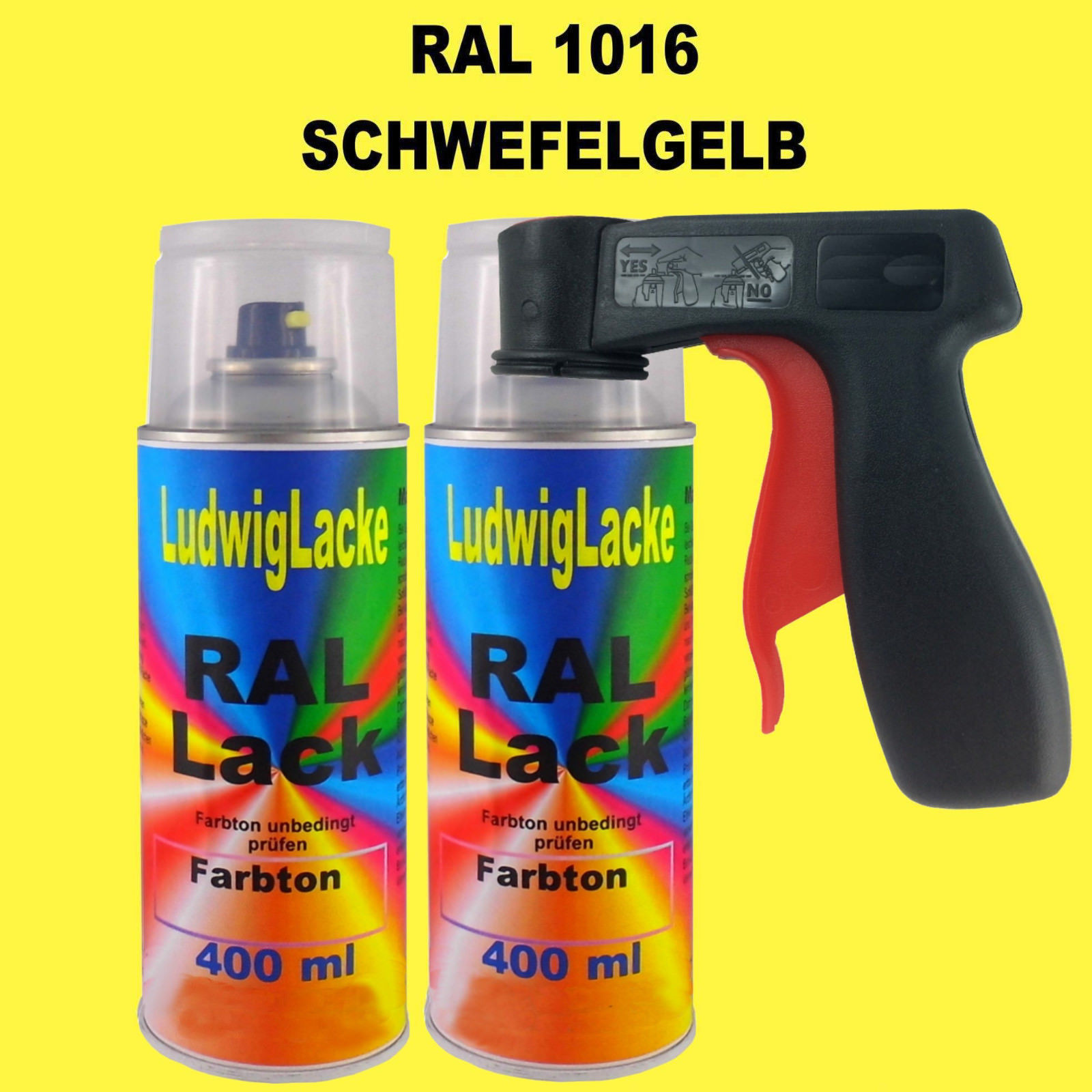 Sofort Kauf Schwefelgelb RAL 1016 glänzend 2 x 400ml Spray Farbenspray Sprühdose & Griff