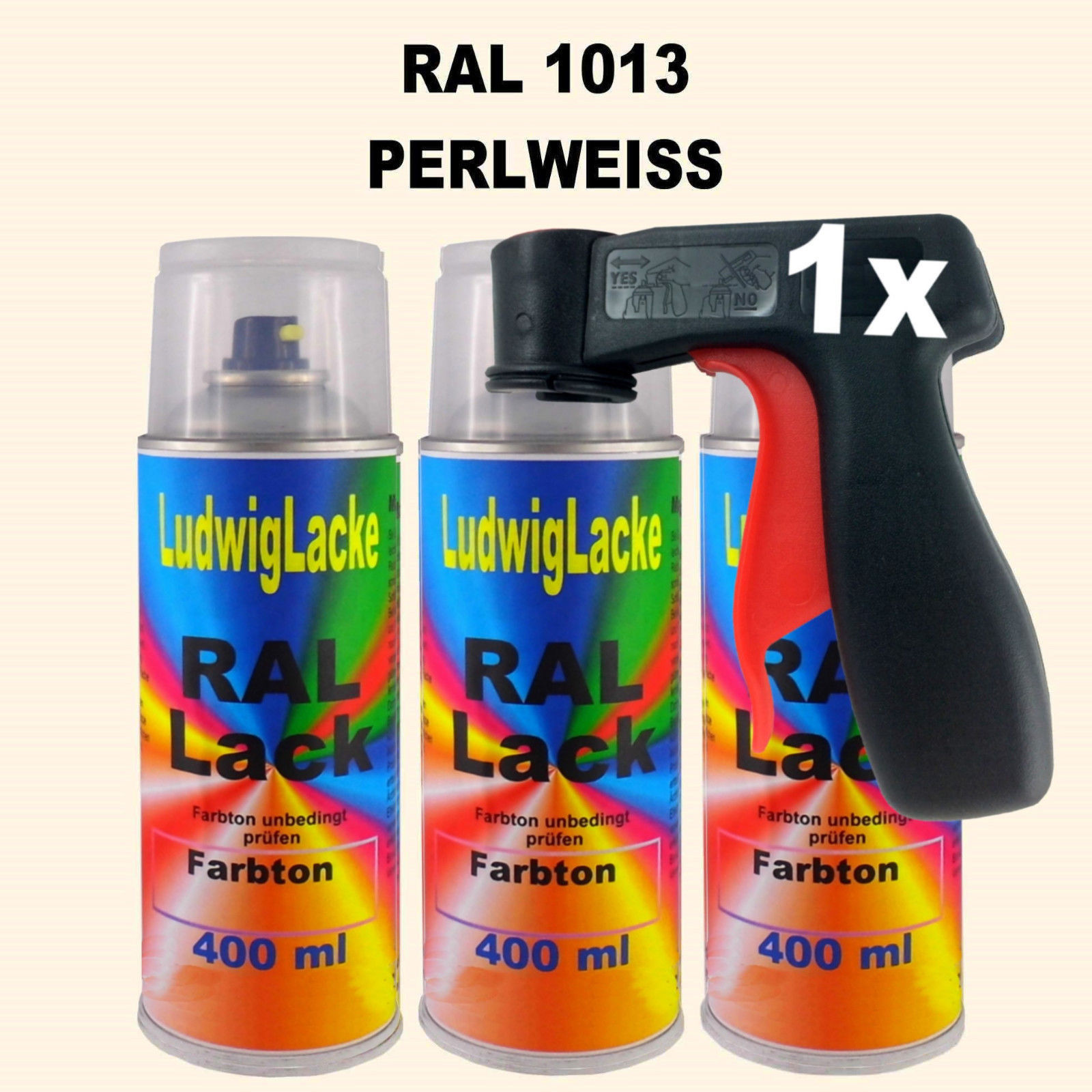 Sofort Kauf Perlweiss RAL 1013 glänzend 400ml 3 Spraydosen mit Haltegriff