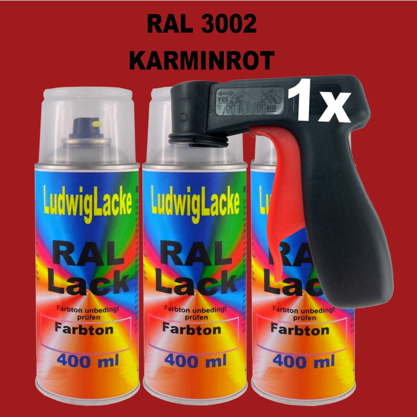 Sofort Kauf Karminrot RAL 3002 glänzend 3 x 400ml Lackspray Spritzlack Autolack & Griff