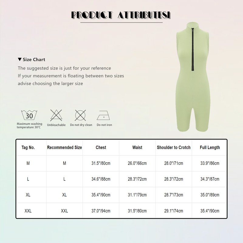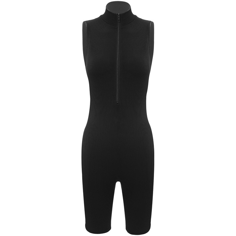 Designs with stand collar, sleeveless, front half-zip, shorts bottom, solid color and slim fit, one-piece bodysuit has good elasticity.