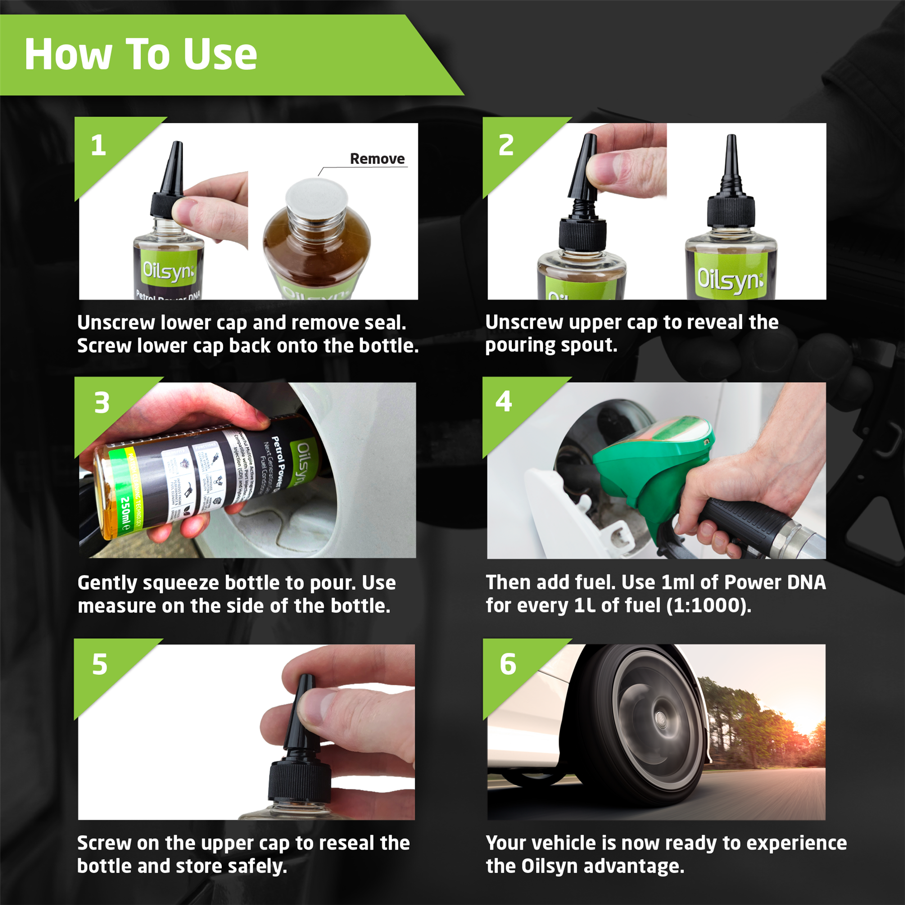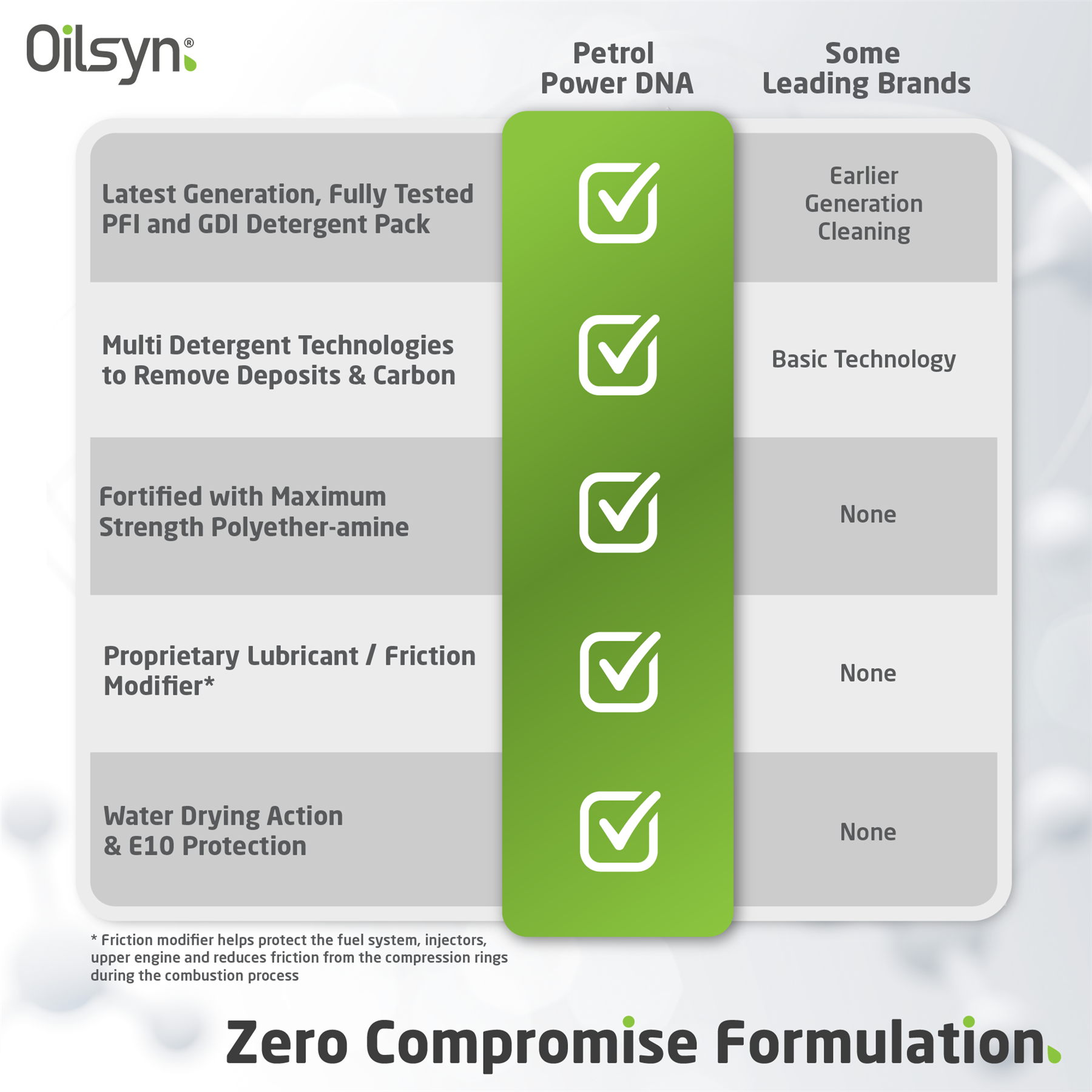 • Expertly formulated, Professional care for your vehicle. Oilsyn Petrol Dr guarantees to outperform any other petrol fuel additive. Feel the Difference.