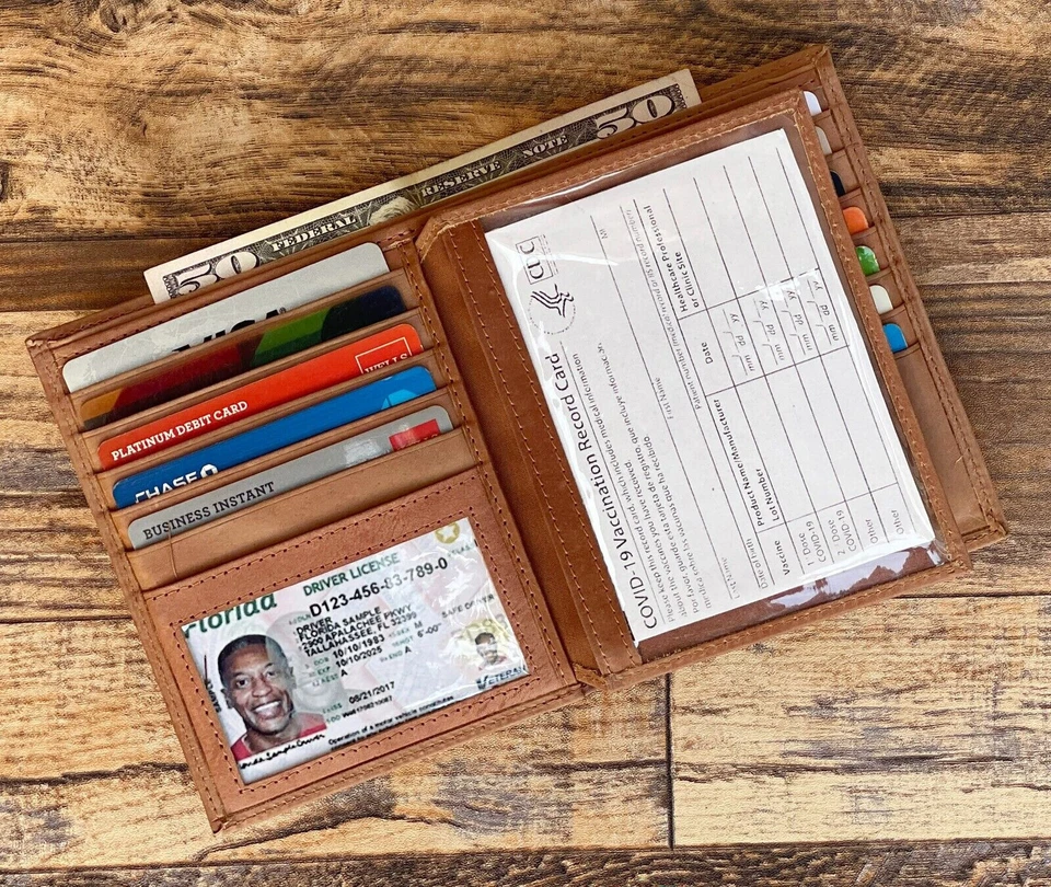 This Genuine Leather wallet comes with an impressive 14 Credit Card slots, which makes it perfect for carrying multiple cards without worrying about running out of space. The wallet also features 1 picture ID window, which can be used to keep your driver's license or other important identification cards easily accessible. The 2 Money pockets are spacious enough to hold all of your cash. Additionally, the wallet features RFID protection to keep your personal information safe and secure. Measuring approximately 5.2" x 4.2" x 0.7", this wallet is compact and easy to carry around, making it the perfect choice for everyday use.