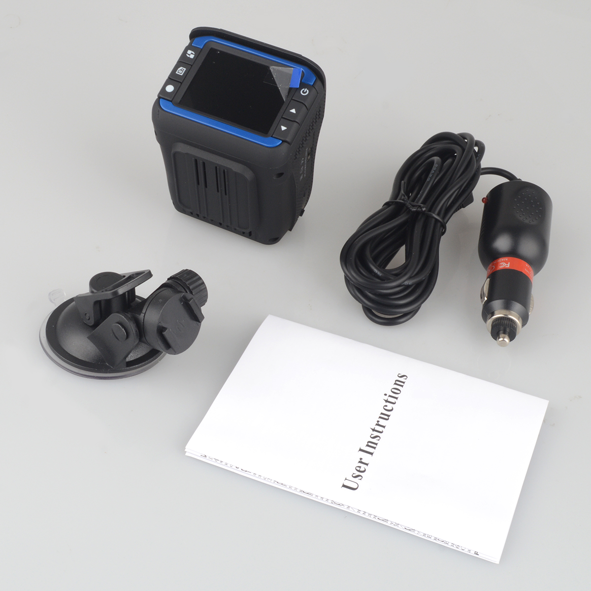 Packing included: car dvr, car charger, suction cup, manual
