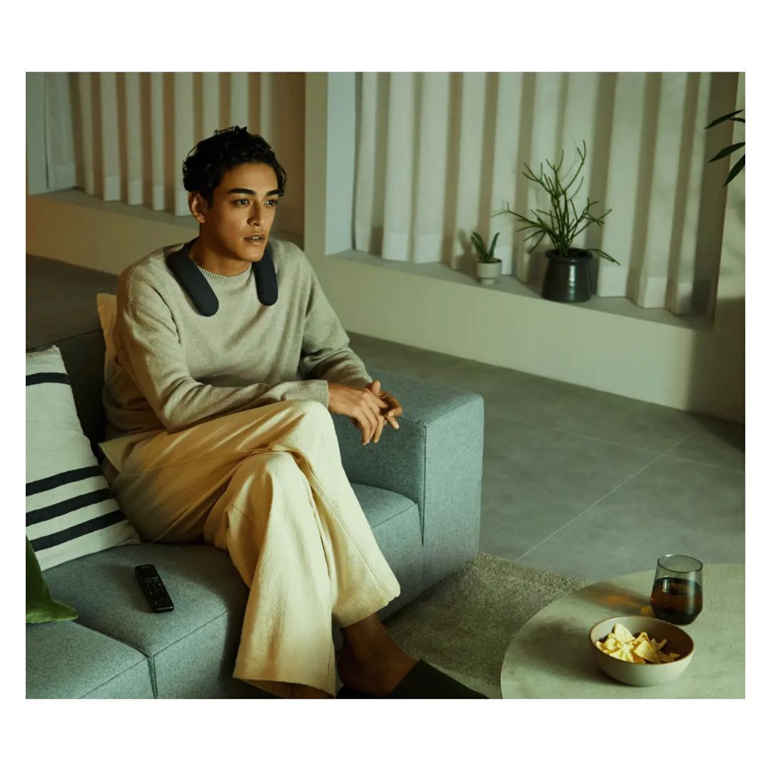 The neckband speaker delivers immersive sound that surrounds your ears for open-air personal listening. Play movies at high volume without having to worry about disturbing sleeping partners or kids.
