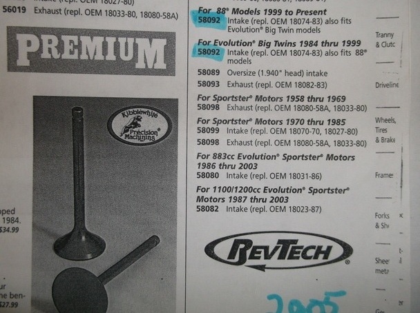 Research: We found this intake valve listed in the 2005 Custom Chrome catalog which states: