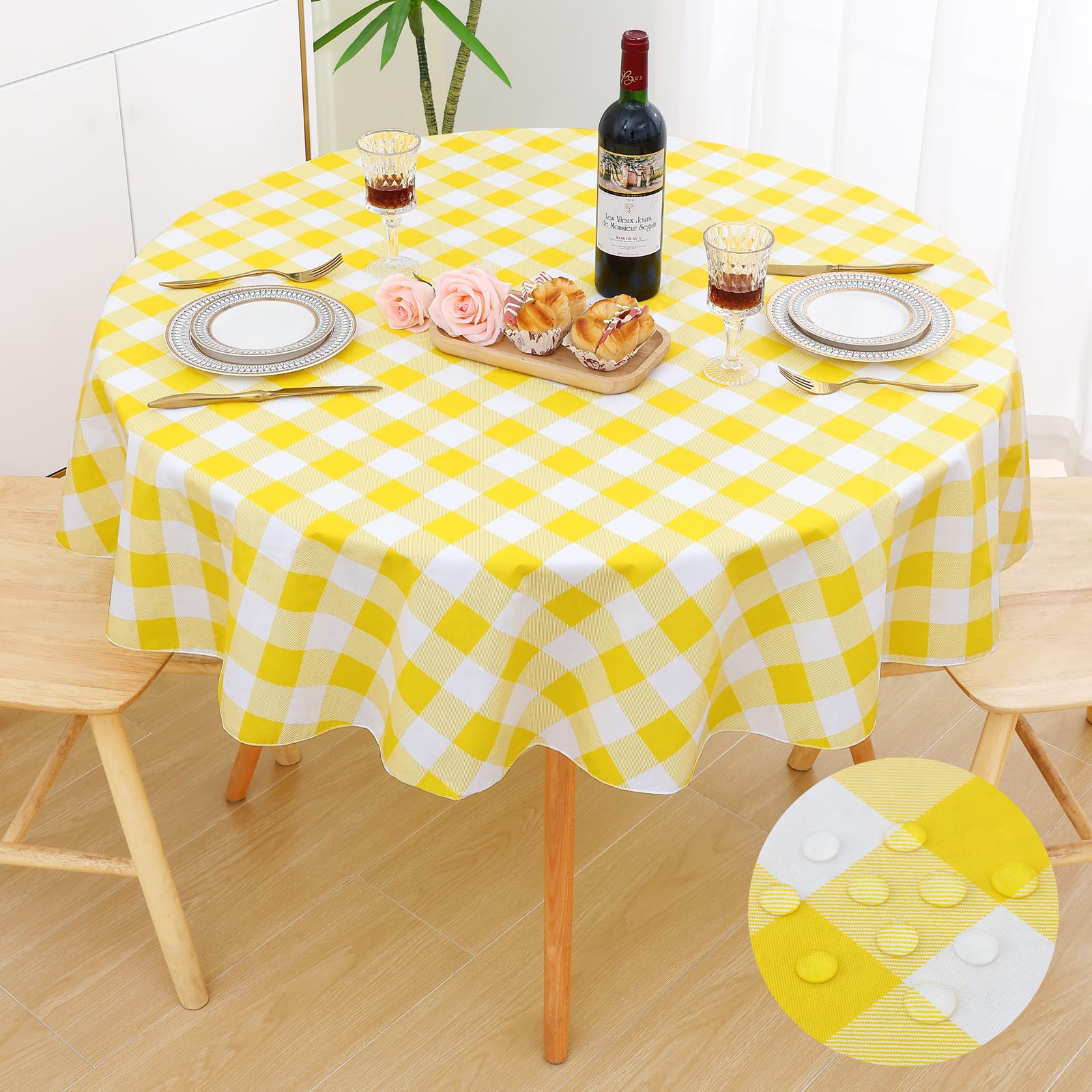 [Sturdy & Long-lasting] Our tablecloths featured premium vinyl surface and flannel back, with unique composite technology, reusable and protect your tabletop from scratch, heat, daily wear and tear