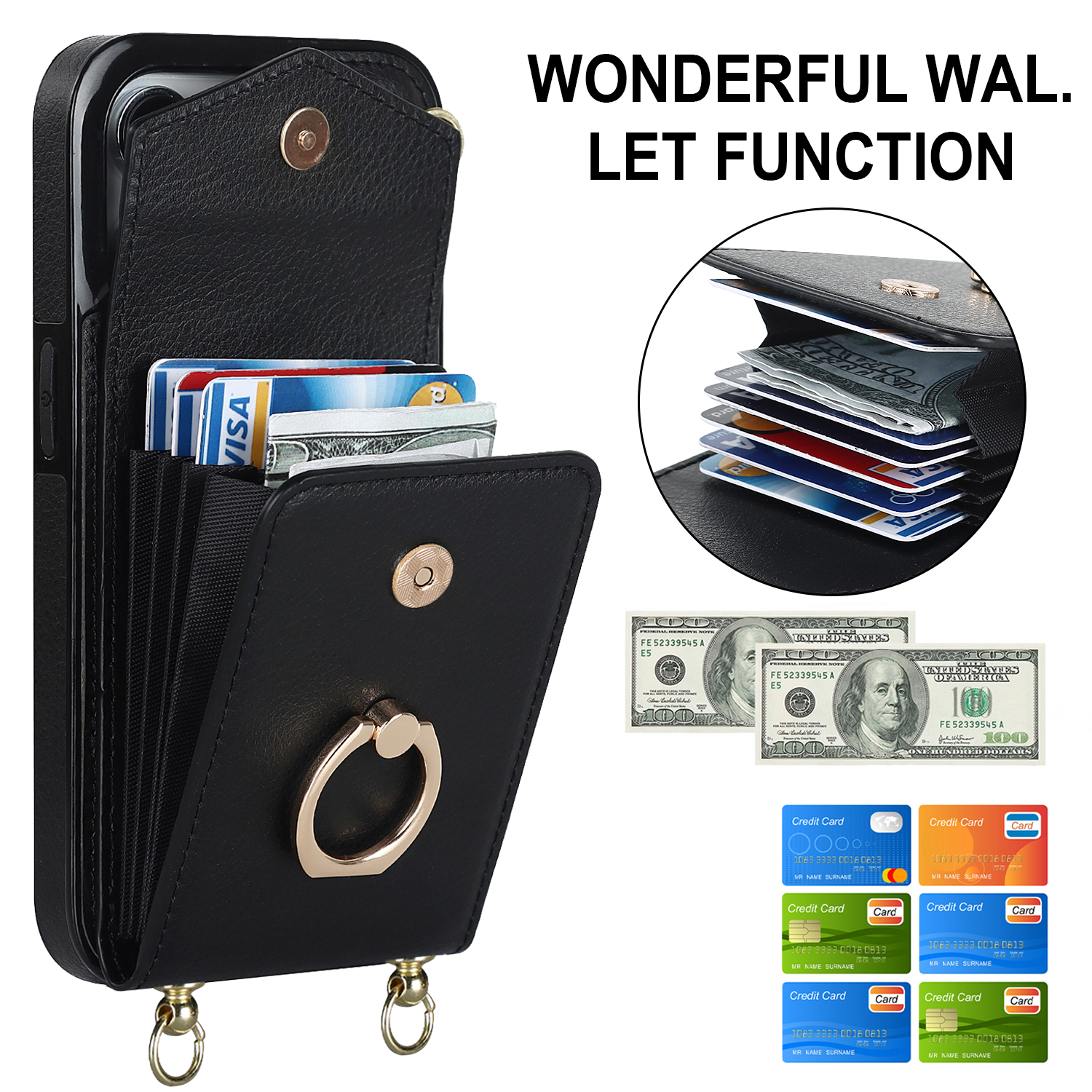 With card slots, you can store your cards or money.