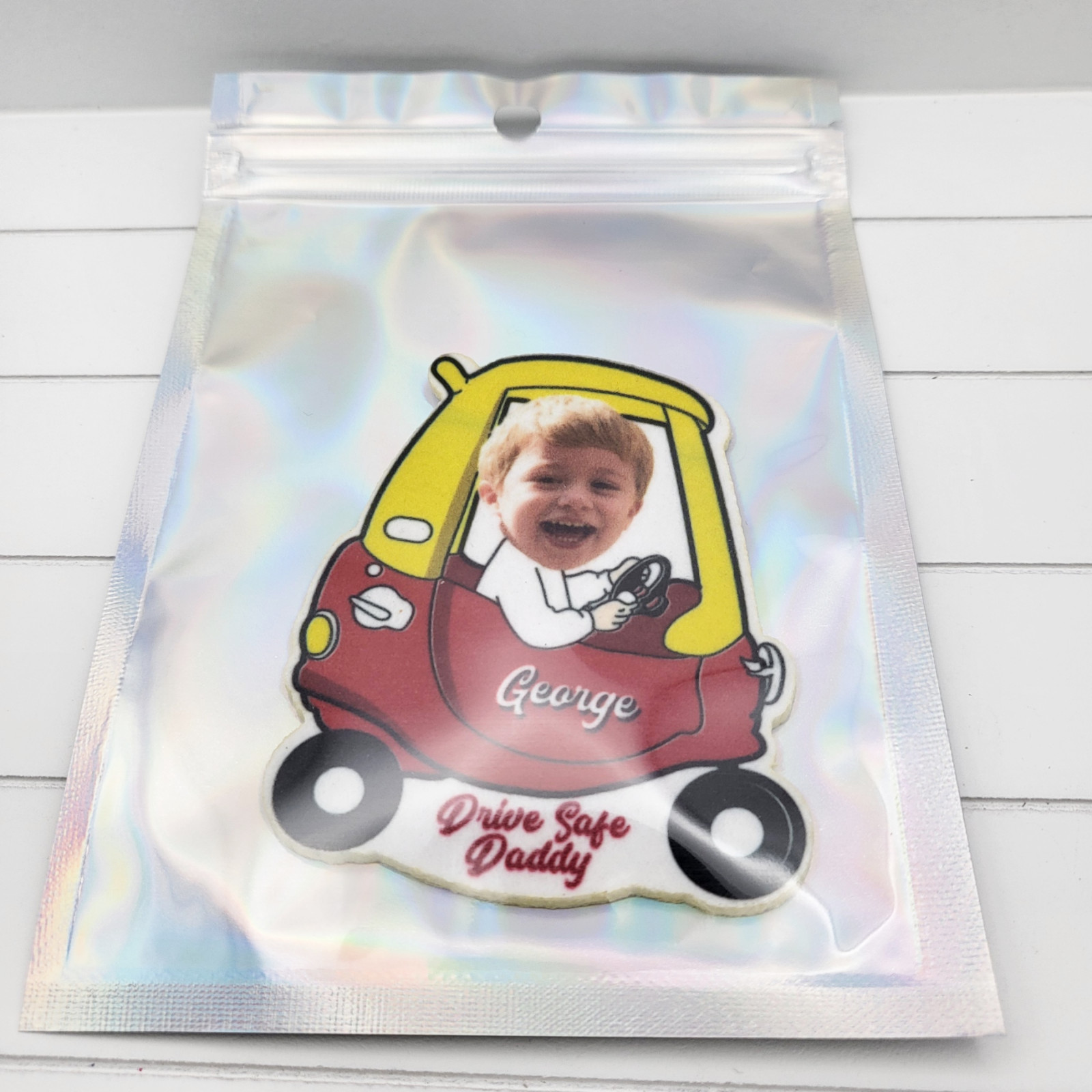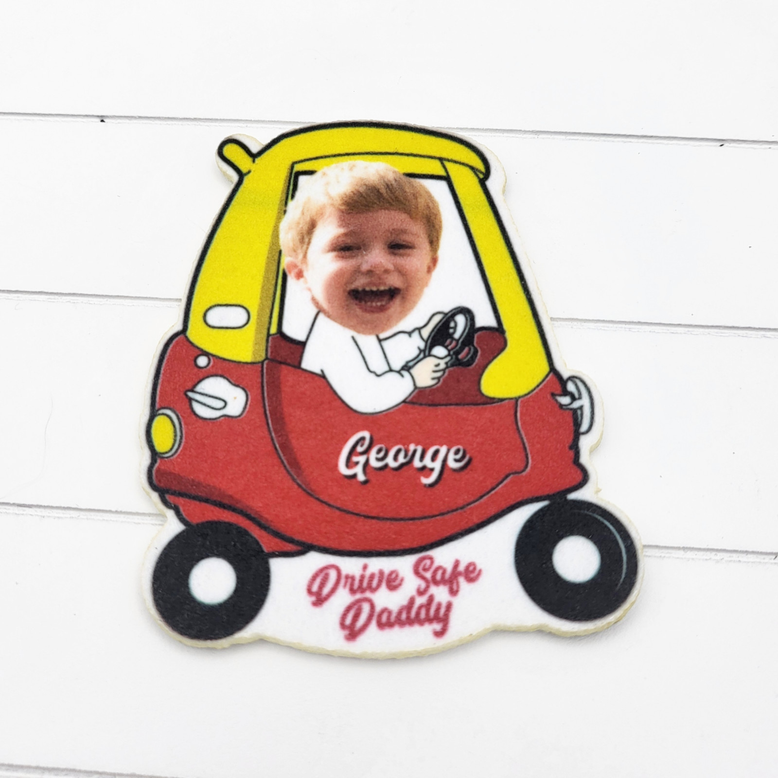 Car air freshener. Customised with your own head shot on and you can add your own custom scent. The air fresheners are made from Subli-Fabric Board (SFB) so have the matte finish.