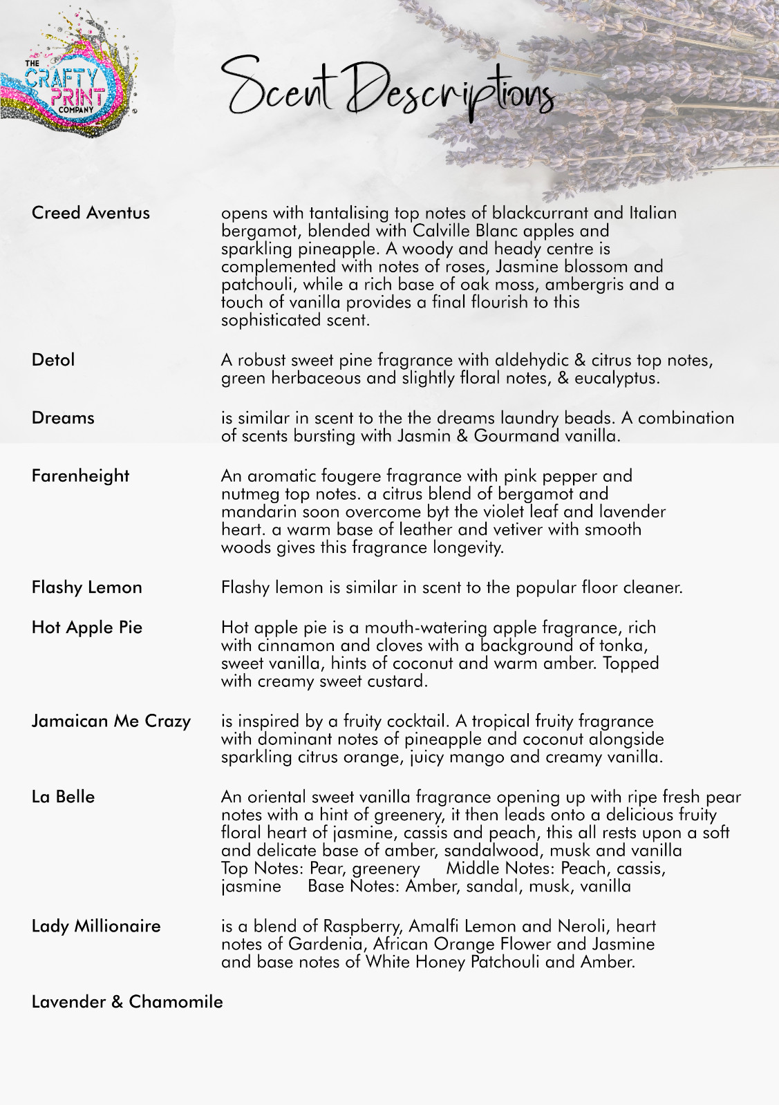 Pick Your Fragrance from the List below