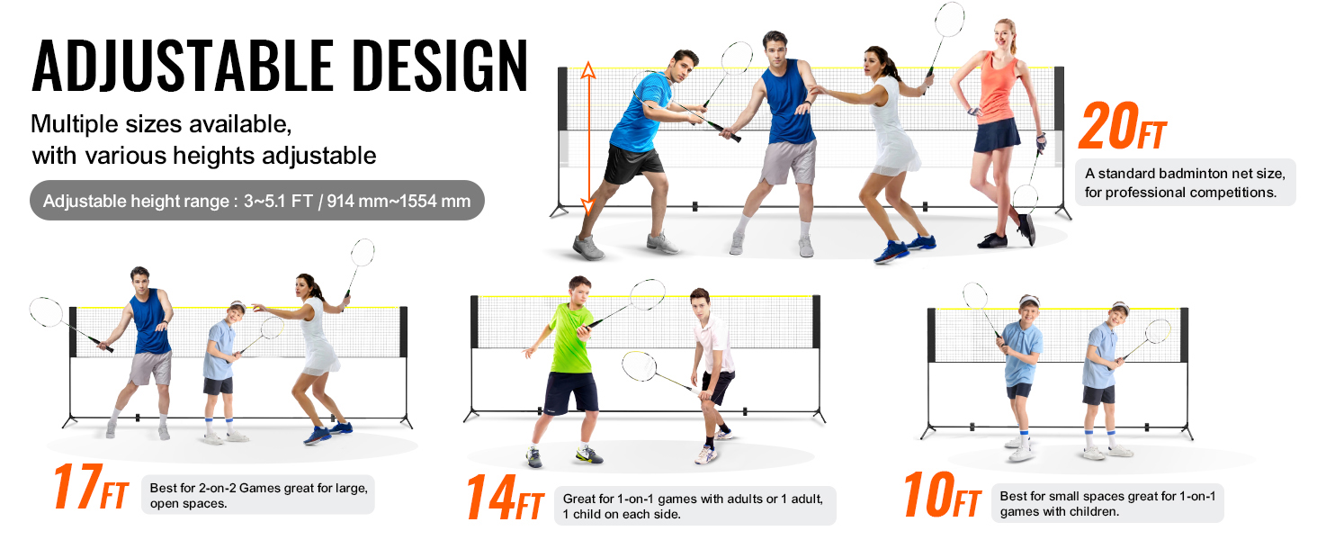 Transform your outdoor space into a hub of activity with this adaptable training net set. The adjustable height ranges from 3 ft to 5.1 ft, allowing you to seamlessly transition between higher and lower positions, making it suitable for activities like pickleball, tennis, and soccer tennis.