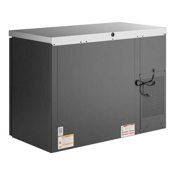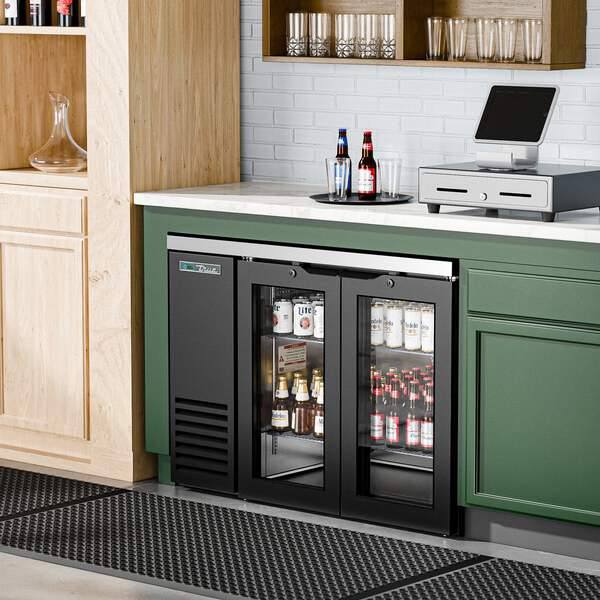 Keep your bar fully stocked with the help of this True back bar refrigerator. This unit can hold up to (76) six-packs of 12 oz. cans or (6) 1/6 size kegs, making drink service easy even on the busiest nights! Designed to accommodate the inevitable spill or leak, the unit's interior features a stainless steel floor, which resists rust and corrosion. For additional durability, the unit boasts a black powder-coated steel exterior with a stainless steel countertop. The unit is equipped with a galvanized steel back and inner walls. This tough construction helps minimize damage to the cabinet from routine loading and unloading, ensuring that it withstands the test of time in your bustling business.
