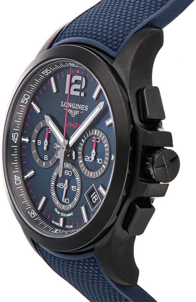 Like all of our watches, this Longines Conquest V.H.P. Chronograph Black PVD Blue Rubber Strap Blue Dial Perpetual Calendar Date Quartz Mens Watch is brand new and comes in its original packaging.
