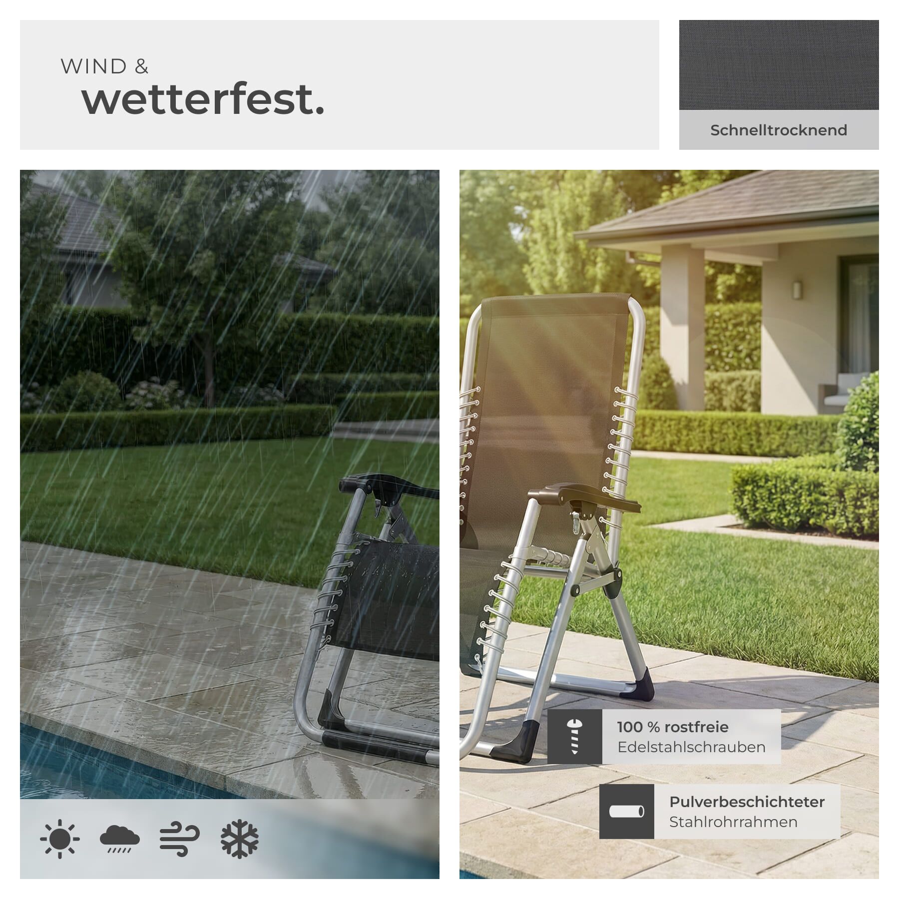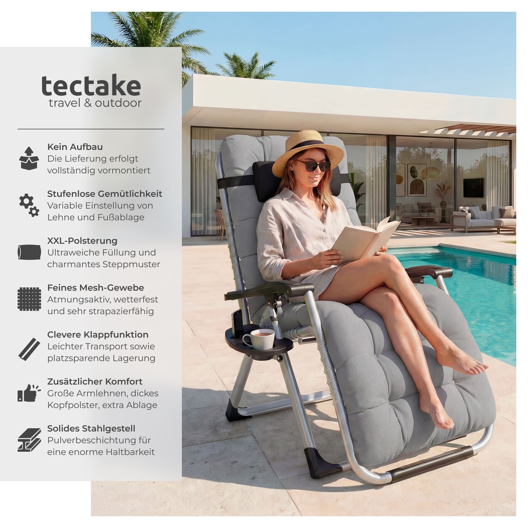 - Superbequeme, klappbare Sonnenliege mit atmungsaktivem Textilene-Gewebe