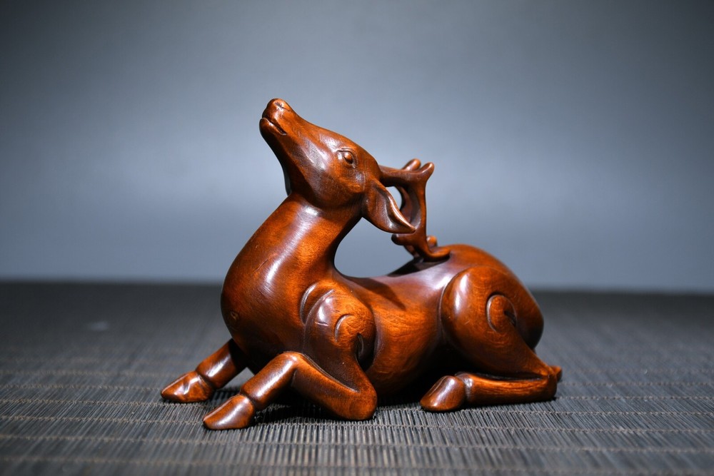 Chinese Antique Boxwood Wood Carving Exquisite Deer Statue Collection Nice Art