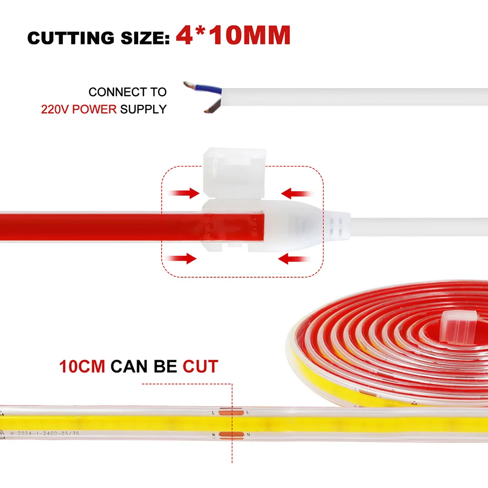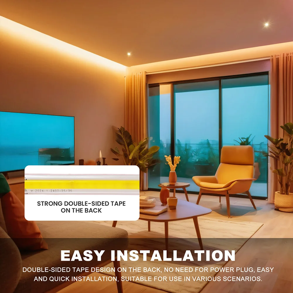 *Built-in Stabilizer: Equipped with an integrated stabilizer, these LED COB strip lights offer a stable and reliable current supply, ensuring consistent brightness and color performance.