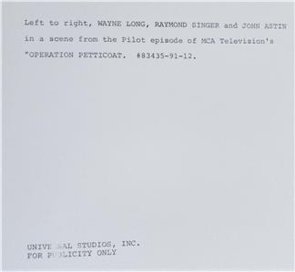 Welcome to my auction - Up for your consideration is this vintage lot of 3, original Universal Studios issue promo photographs featuring John Astin in Operation Petticoat and Evil Roy Slade. One has typing on back as shown, Slade is dated 1985.
