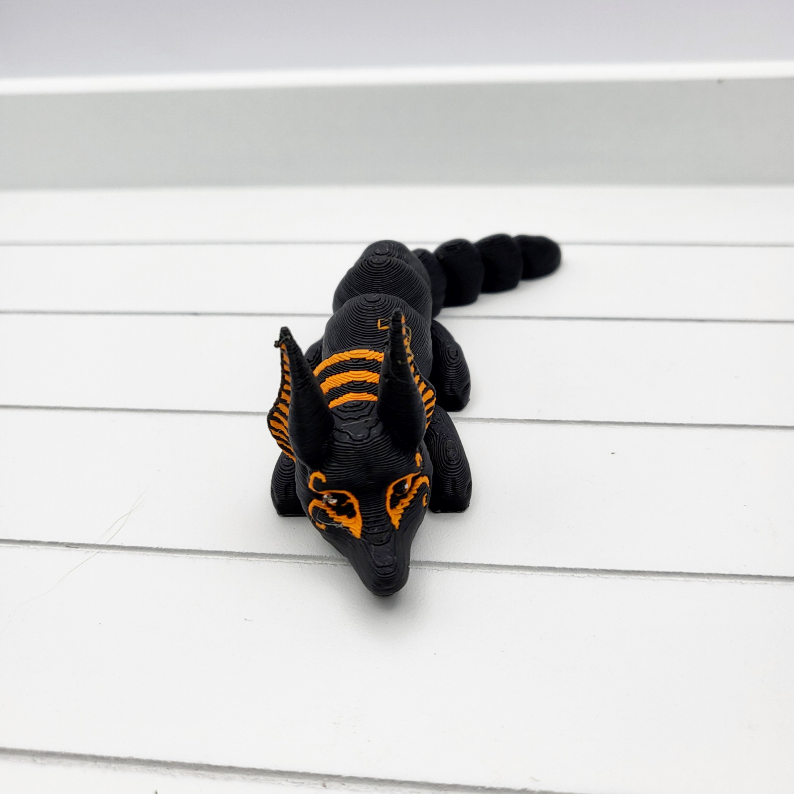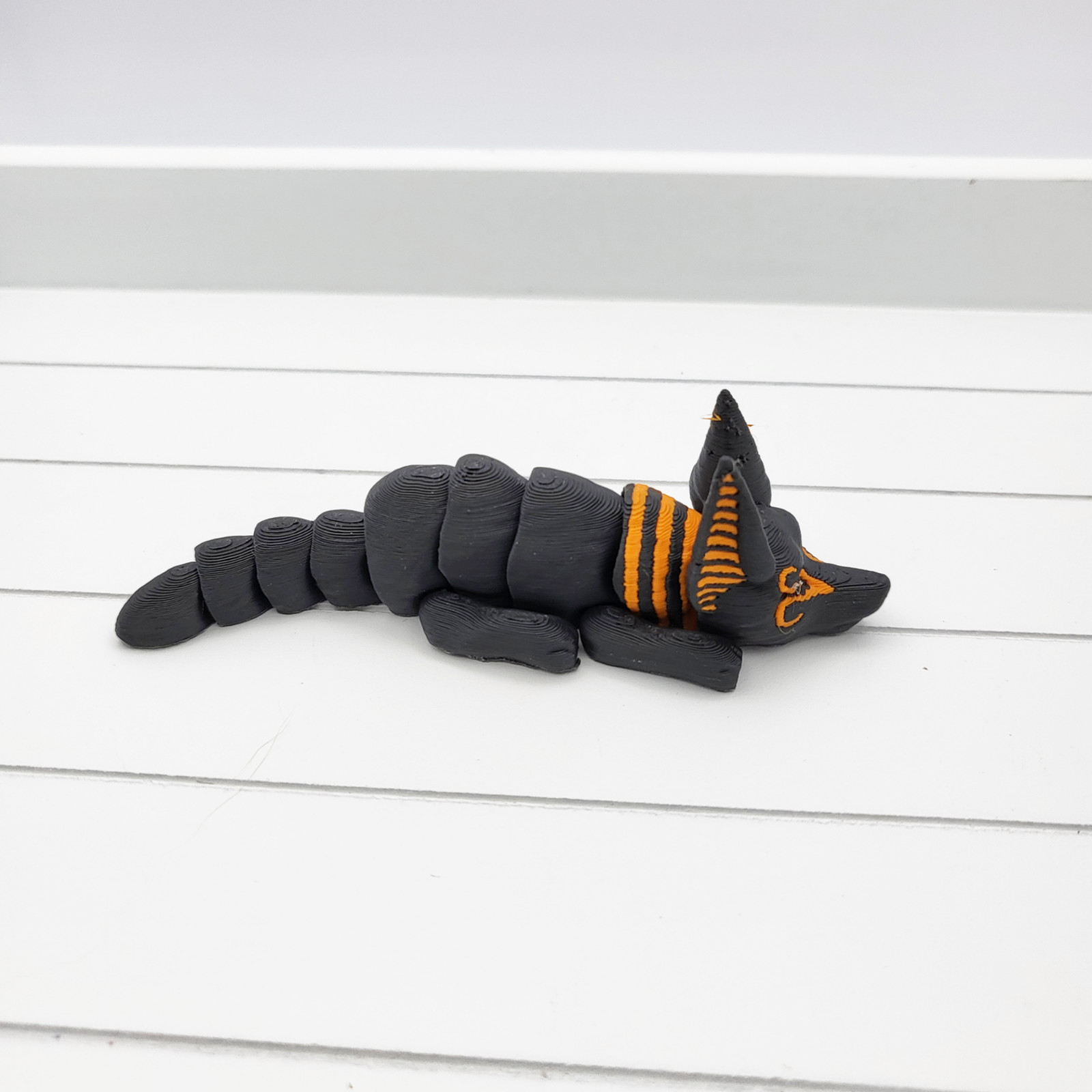 This 3D printed Anubis Jackal Flexi Articulated Toy is a versatile accessory that can be used as a fidget toy or a desk pet. Made of durable plastic, it features an articulated design and comes in a multi-coloured theme that is sure to catch the eye.Crafted in the United Kingdom, this Fidget Toy is perfect for fans of Anubis Jackal-themed toys and collectables. Get your hands on this adorable and practical item, and add a touch of fun to your daily routine.These are 3D printed in PLASize: Length 110mm x Width 30 mm approx == INFORMATION ==Due to the nature of 3D printing, there may be small imperfections or layer lines. These are all normal parts of the 3D printing process and cannot be avoided.Please keep in mind that you will receive a unique item. Our Rainbow filaments transition through many colours. Dual & Tri Colour filaments consists of multiple colours. We do not have control over the exact colour positions on the model so your model may be slightly different from our photos.== CLEANING ==To clean the plastic, do not expose to high heat. The bio-sourced plastic is affected by temperatures above 65 degrees Celsius (150 Fahrenheit).Gently wash with soap and slightly warm water.=== DISCLAIMER ===These are NOT intended for small children or for unattended use as they do have many small parts that can become unattached and become a choking hazard or hazard in general. We take no responsibility for the misuse of this item.Design Copyright:KeKreations (The Crafty Print Company is an authorised reseller)