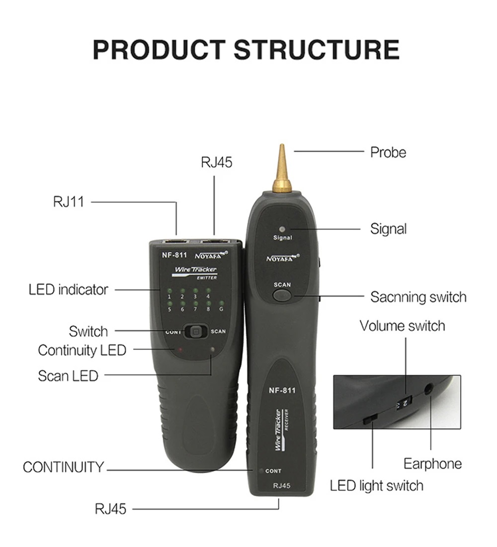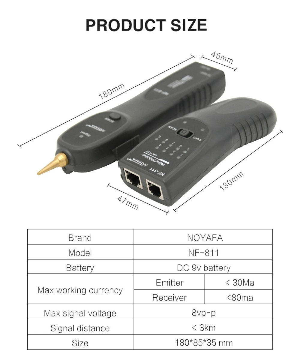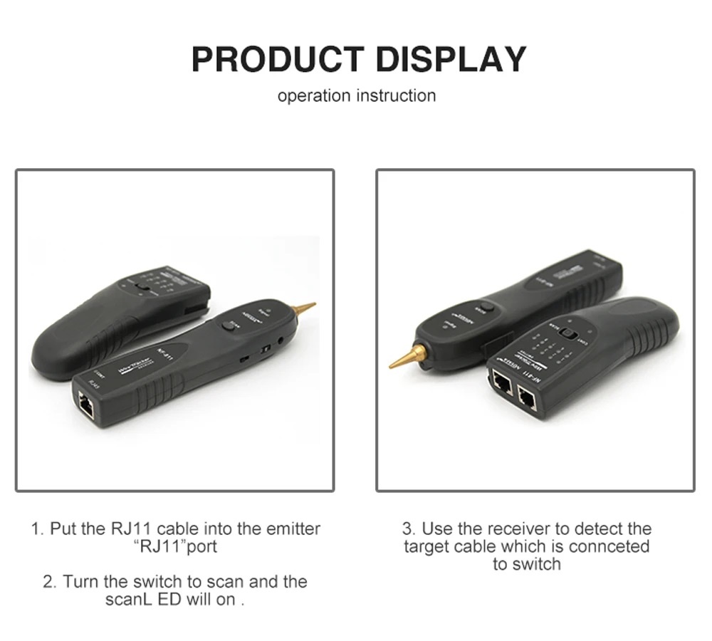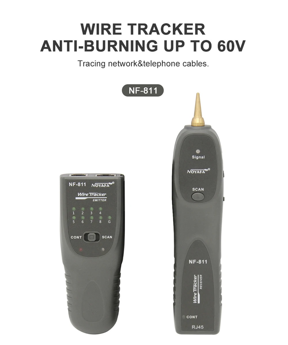 Versatile Testing: Tests RJ45, RJ11, and telephone cables for faults.