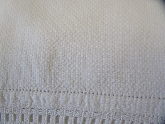 Here is a large white huckaback linen guest towel.