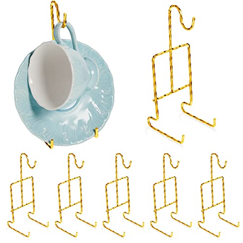 Features: The tea cup and saucer displays are approx. 15.8 x 6.2 cm/ 6.22 x 2.44 inches, nice for you to hold and show your collectibles, cups, saucers, keepsakes in the kitchen, dining room, cabinet or on a shelf, indicating your selection taste. These cup and saucer displays are also be applicable for hanging towels and cooking utensils, also they are easy for your storage and won't occupy your space on the countertop. Specifications: Material: metal Color: gold Size: approx. 15.8 x 6.2 cm/ 6.22 x 2.44 inches Package includes: 8 x Cup and saucer display Notes: Manual measurement, please allow slight errors on size. The color may exist a slight difference due to different screen displays.