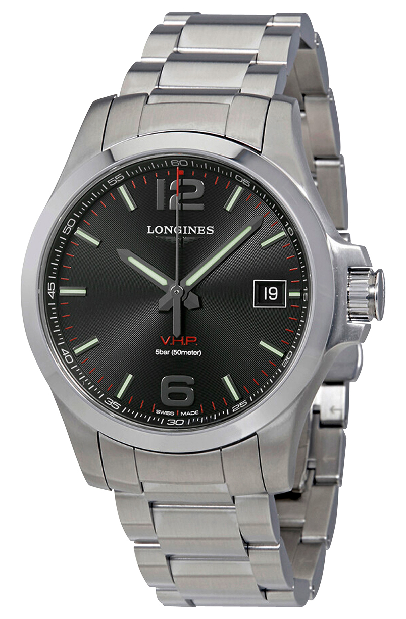 Longines Conquest V.H.P. Stainless Steel Black Dial Perpetual Calendar Date Quartz Mens Watch Model# L3.716.4.56.6 / L37164566