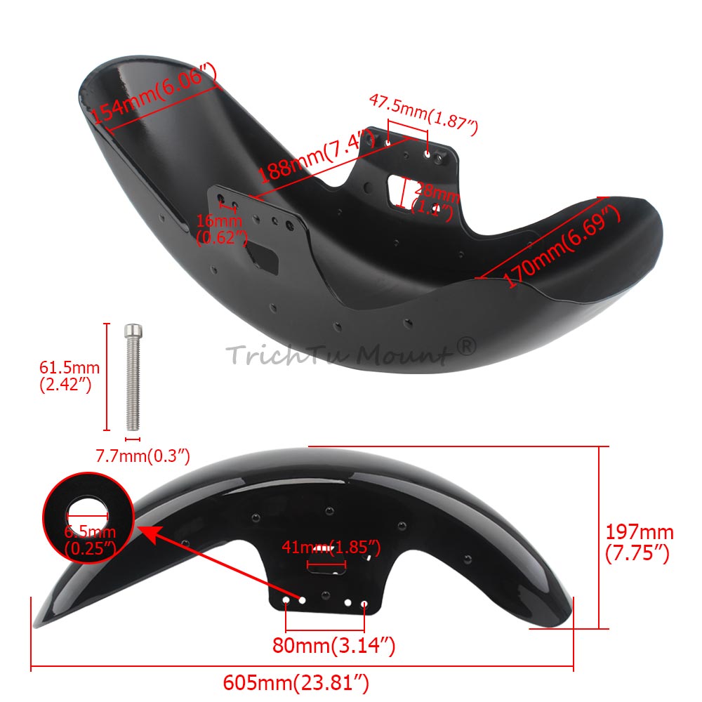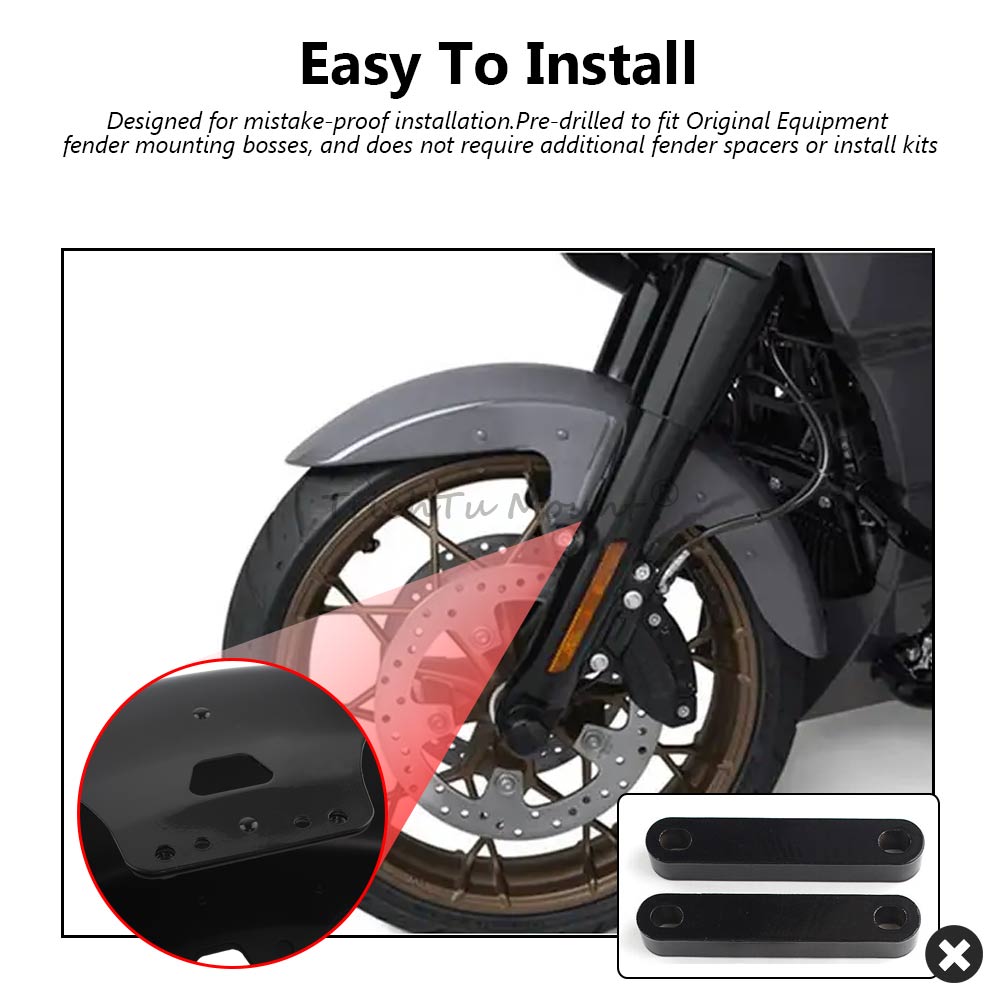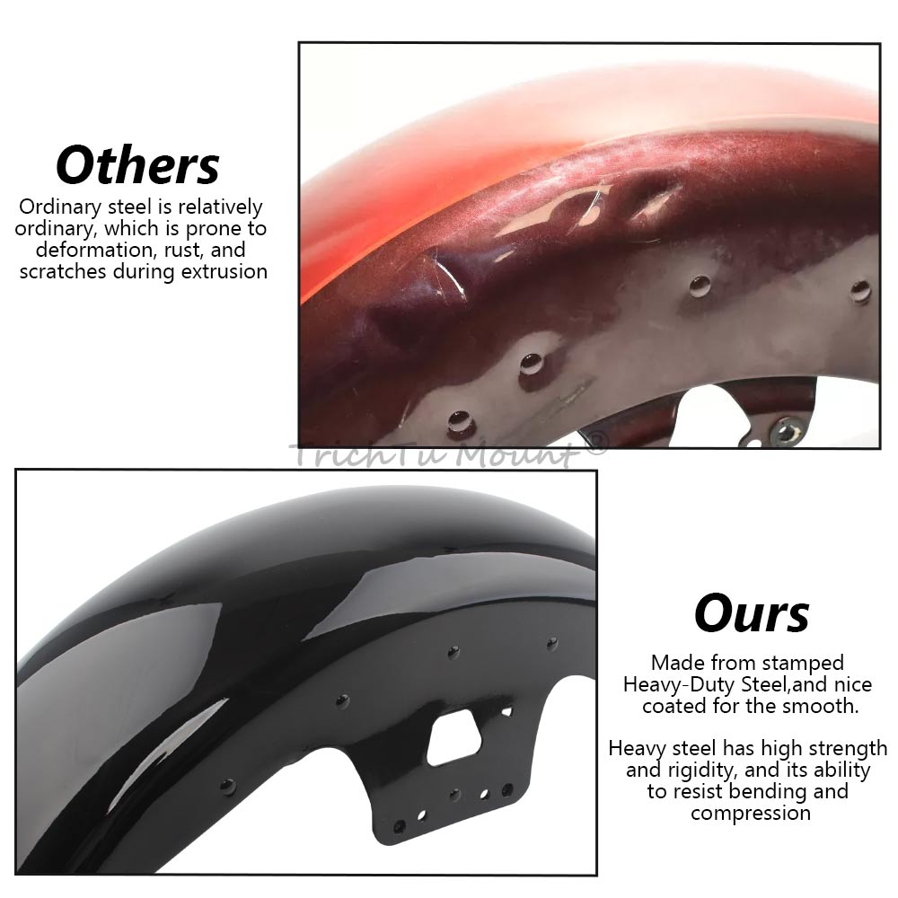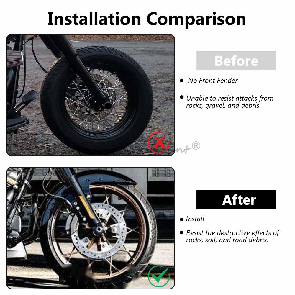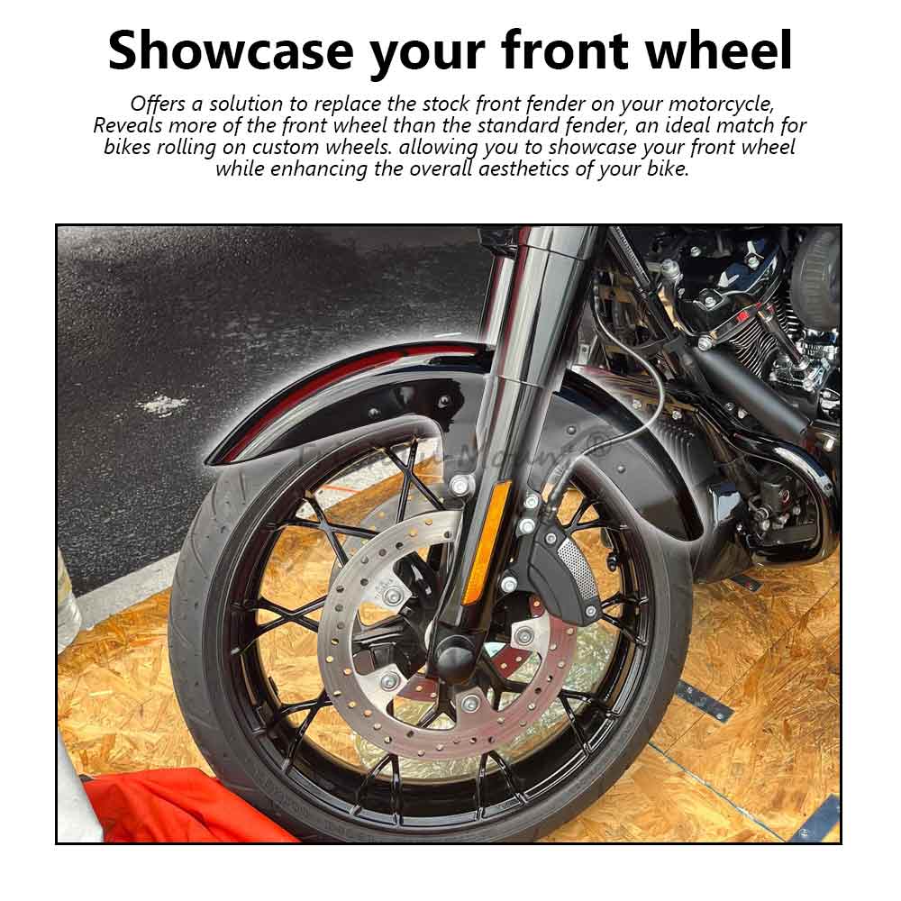 Offers a solution to replace the stock front fender on your motorcycle, Reveals more of the front wheel than the standard fender, an ideal match for bikes rolling on custom wheels. allowing you to showcase your front wheel while enhancing the overall aesthetics of your bike.