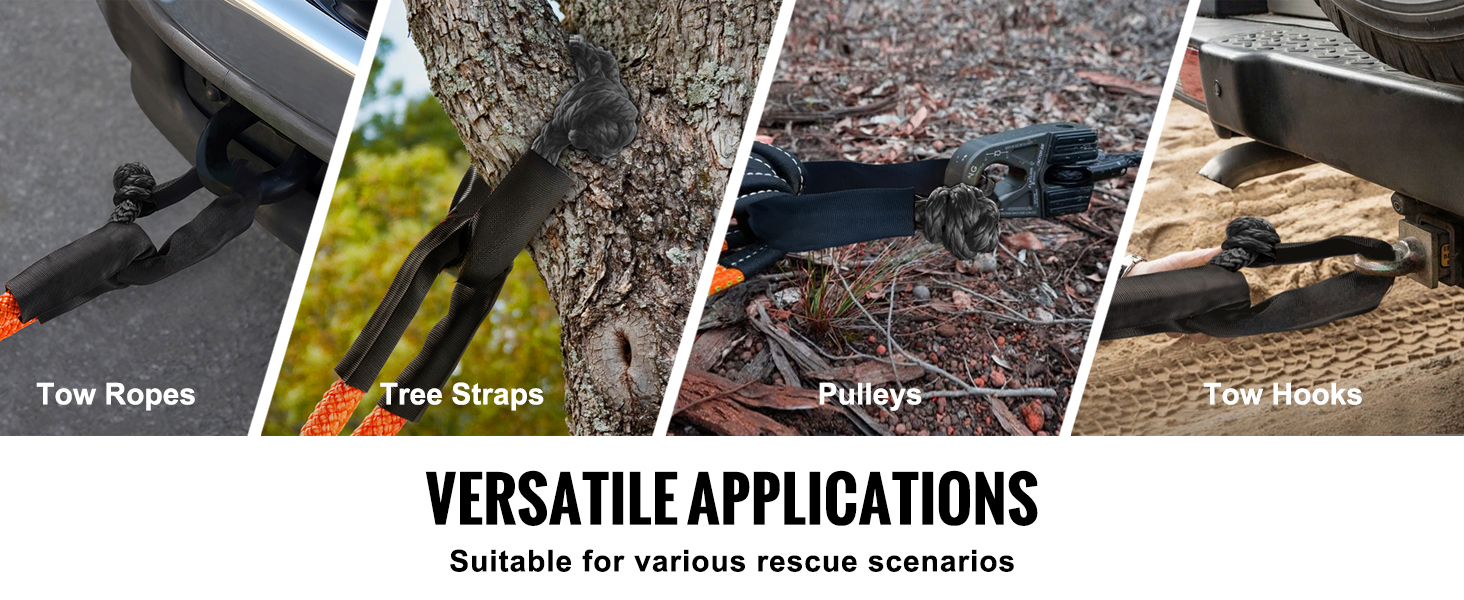 Our soft shackle recovery kit is perfect for diverse rescue scenarios and is compatible with towing ropes, hooks, winch pulleys, and more.