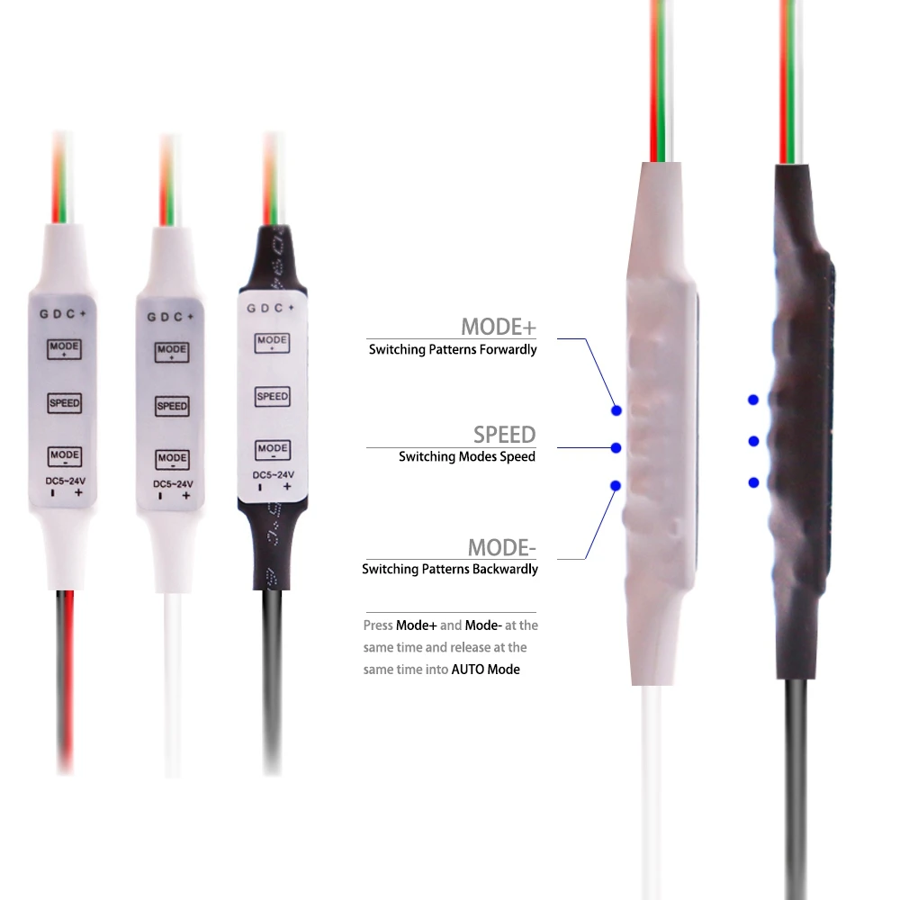 Mini WS2812B WS2811 LED Pixels Strip Light Controller 3Keys USB DC SP621E Music Bluetooth APP Control DC5V-24V
