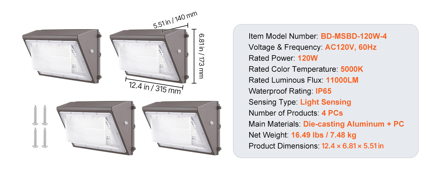 Our LED wall pack light delivers an impressive 11000LM super-bright illumination, IP65 waterproof rating, and 3000+ hours lifespan, illuminating your surroundings with ease. Utilizing intelligent light sensing technology, you'll experience intelligent and convenient lighting like never before.