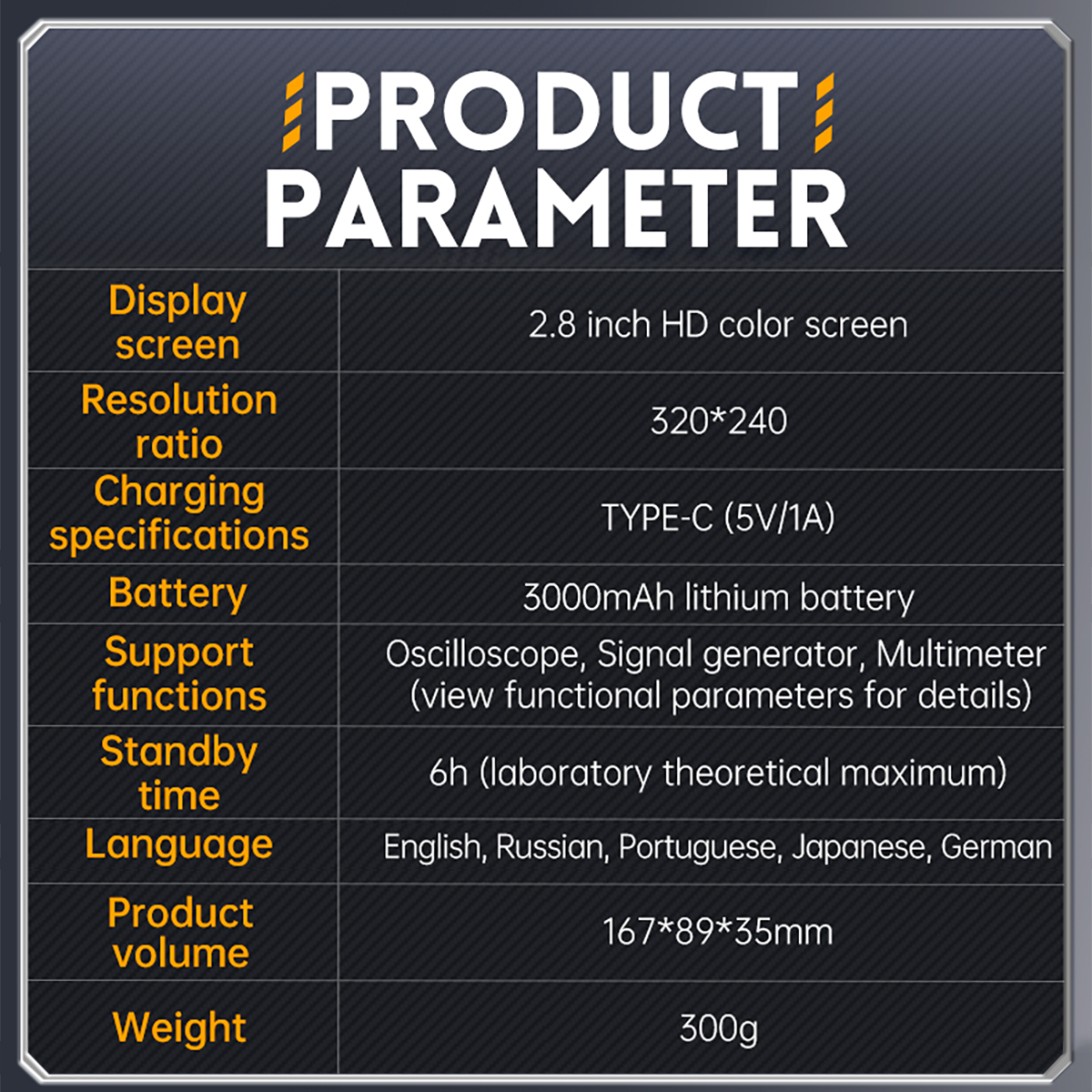 【Excellent Design】The Oscilloscope adopts FPGA+MCU+ADC hardware architecture, built-in high-voltage protection module, adopts 2.8-inch 320*240 resolution HD LCD display, built-in 3000mAh rechargeable Li-ion battery, standby time up to 6H, Type-C interface supports 5V/1A power adapter charging.