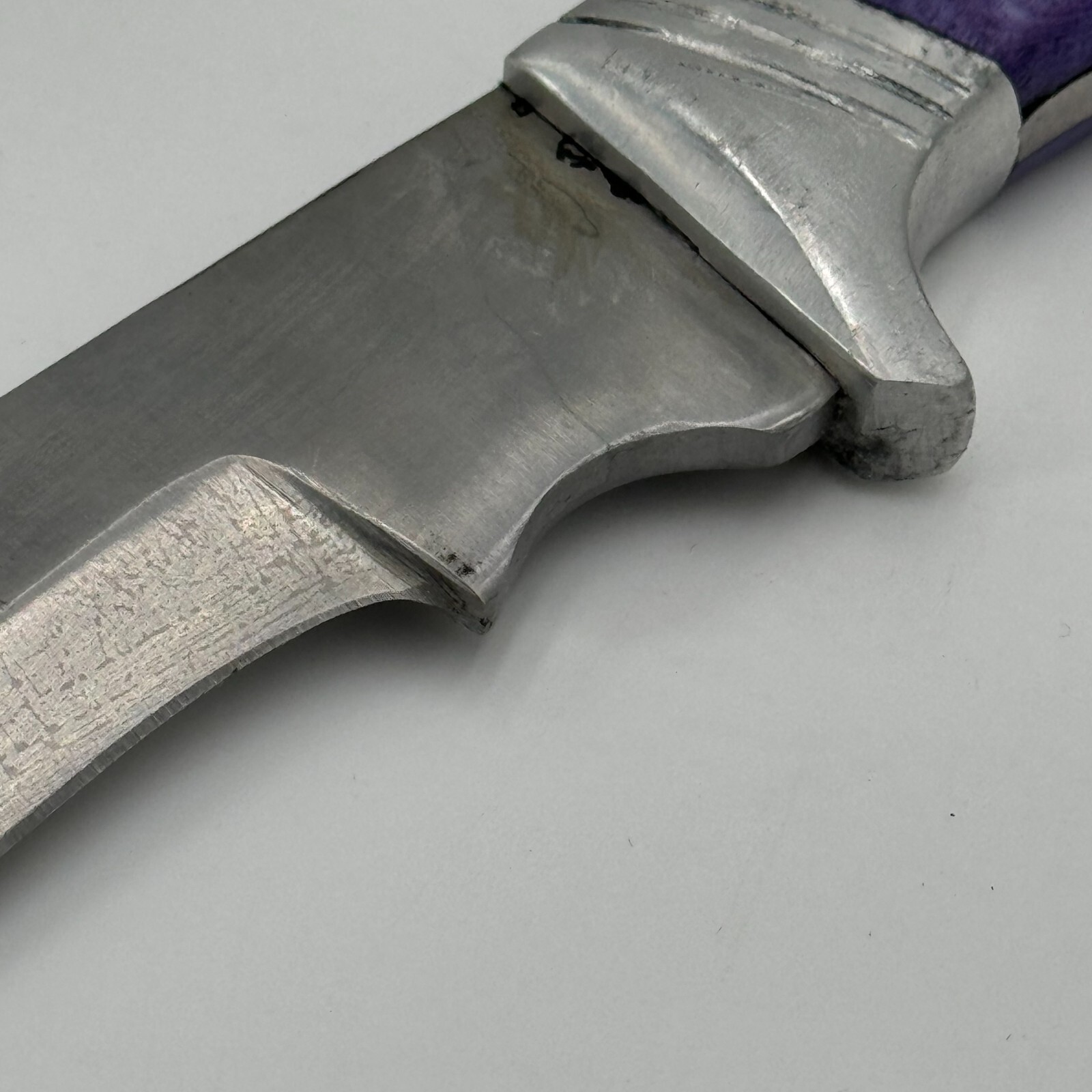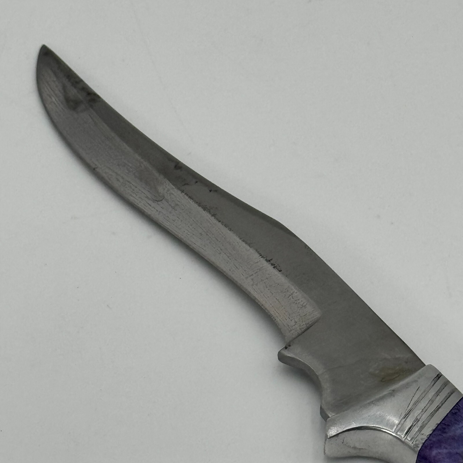The blade type is a trailing point and the knife is categorized as a modern fixed blade collectible.