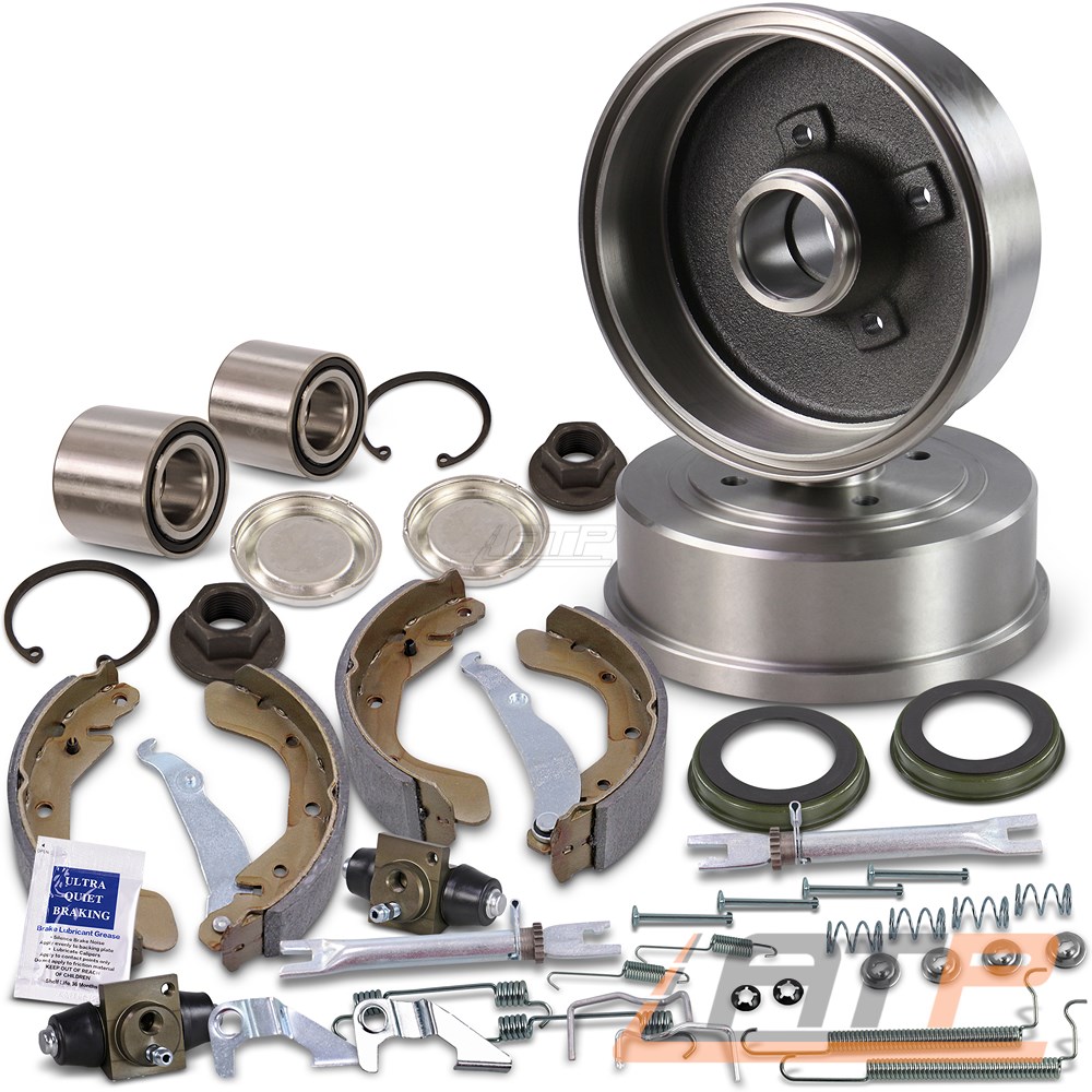 (Bremstrommeln+Radlager+Bremsbacken mit Zubehör+Radbremszylinder +ABS-Ring +Nachsteller)