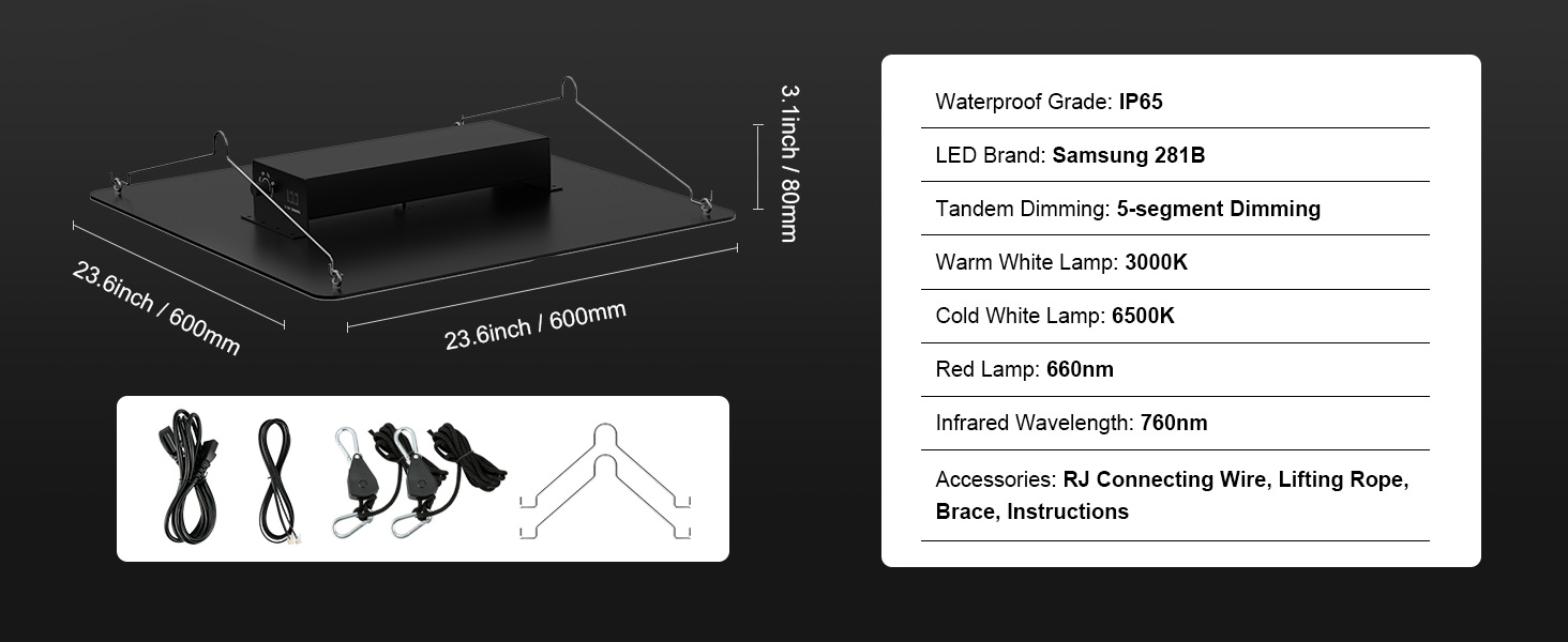 - Effortless Setup & Customization: This grow light features a stabilizing bar for easy installation and adjustable height, ensuring flexibility and stability during setup. It offers five brightness levels, allowing you to tailor the light intensity to your needs. The ability to connect multiple lights with synchronized dimming is ideal for extensive indoor gardening and commercial cultivation, giving you full control over your growing environment.